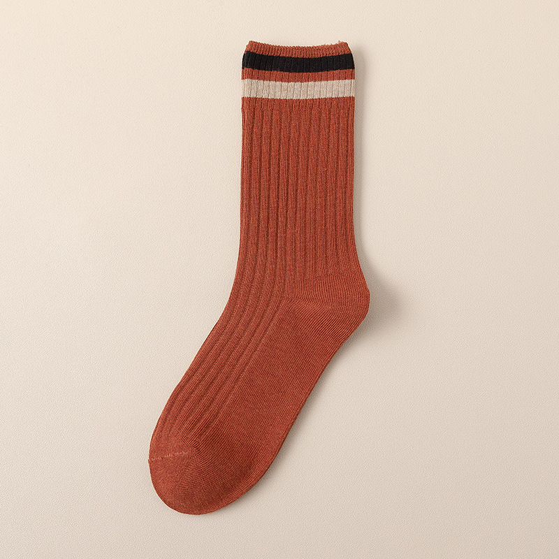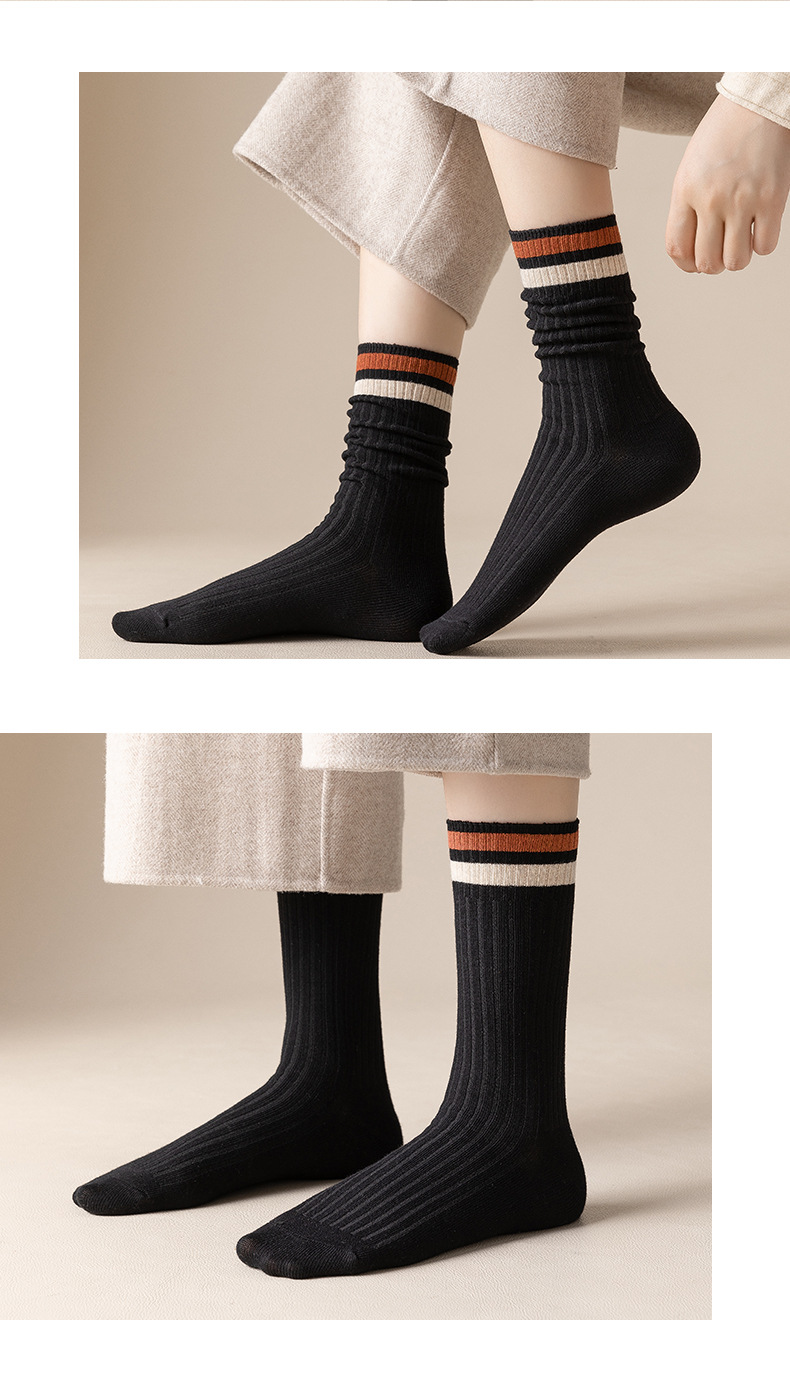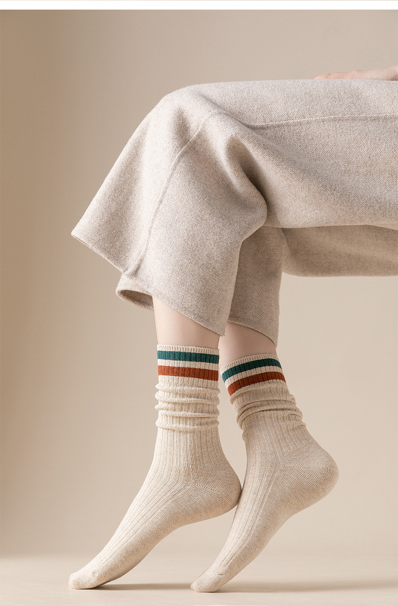 신장면 양말 여성용 중간 길이 가을 겨울 순면 방취 부츠 롱 양말 더블 스트라이프 가을 스타일 여성용