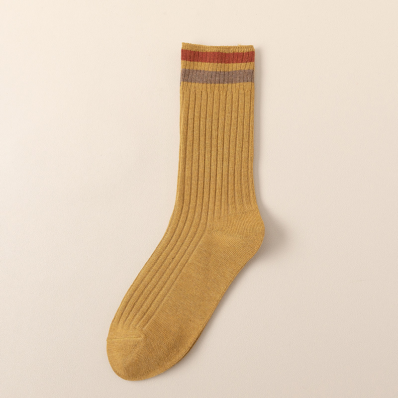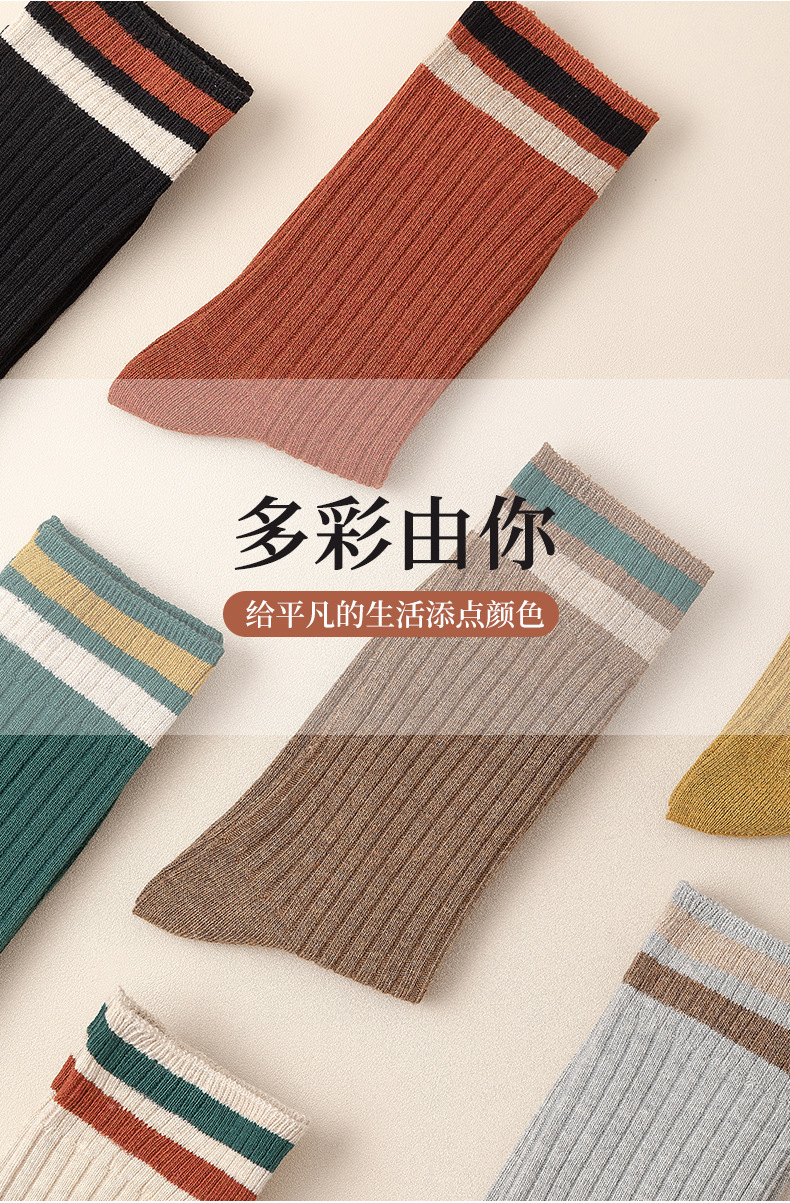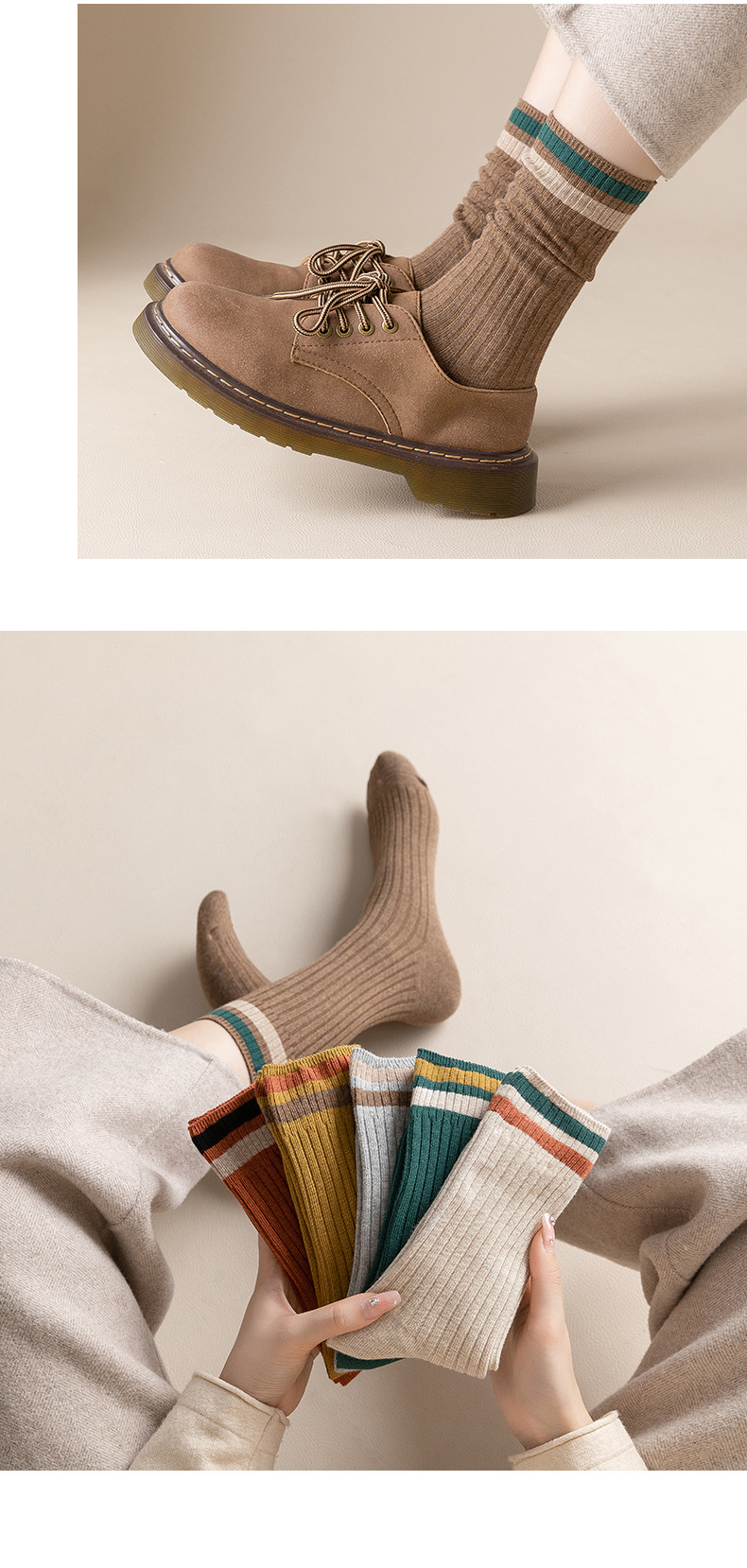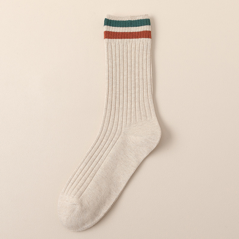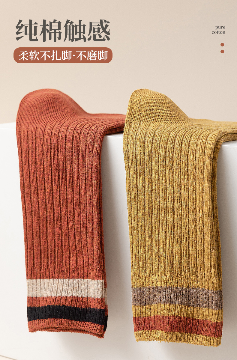 신장면 양말 여성용 중간 길이 가을 겨울 순면 방취 부츠 롱 양말 더블 스트라이프 가을 스타일 여성용스토어 가기