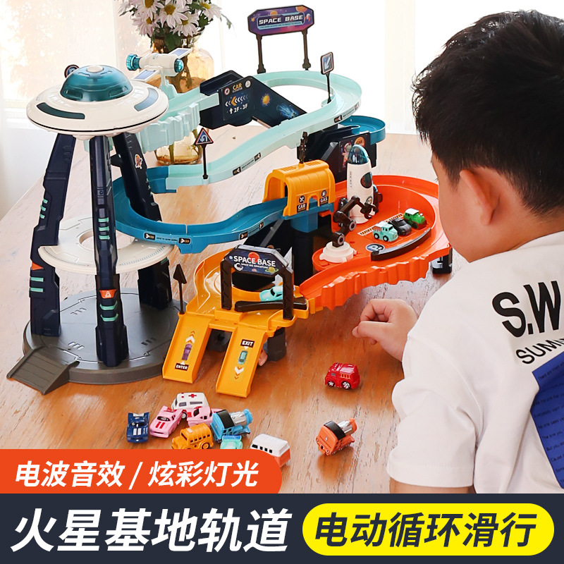 어린이 우주 퍼즐 자동차 돌파 모험 도시 주차장 장면 궤도 화산 기지 전기 자동차스토어 가기