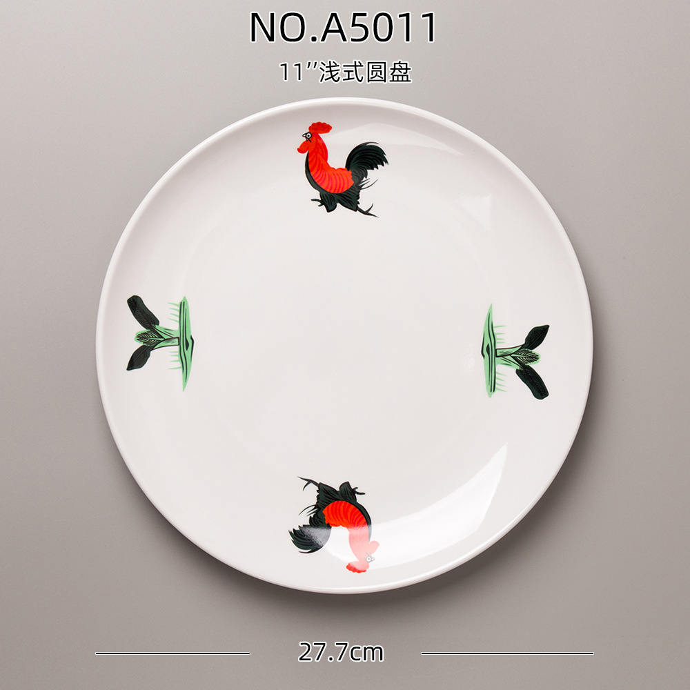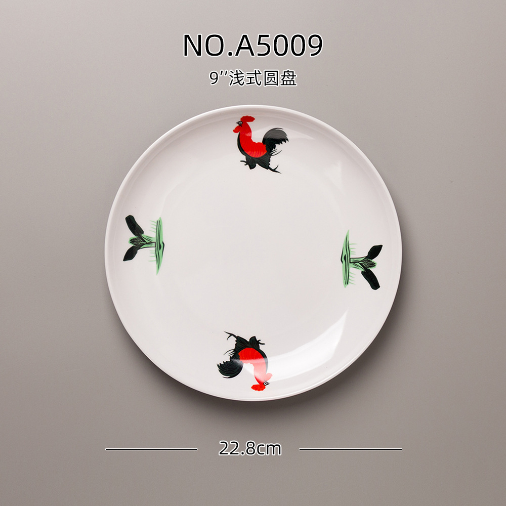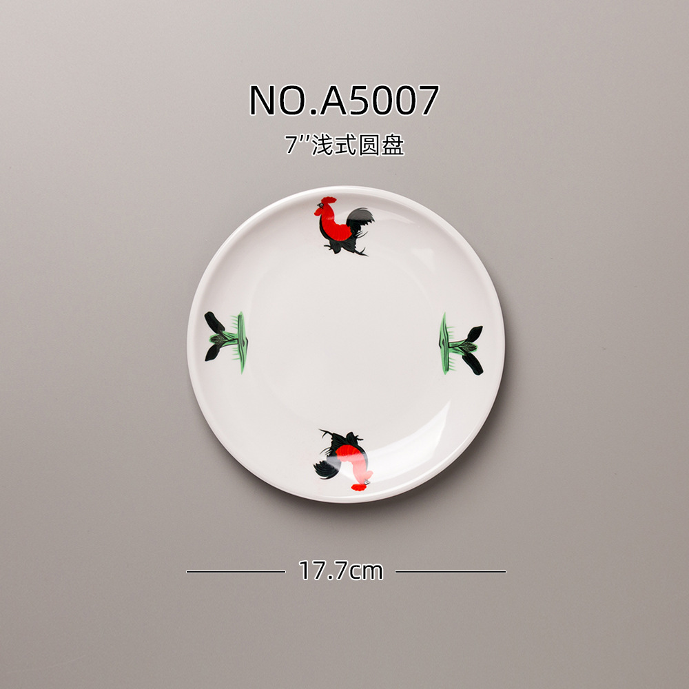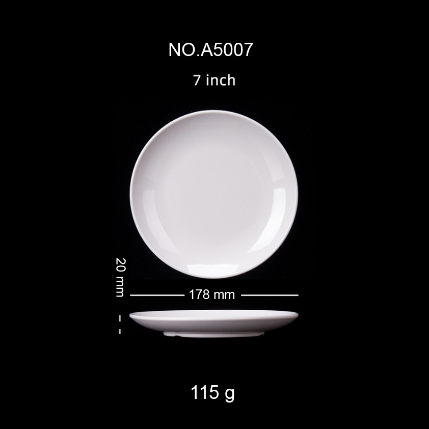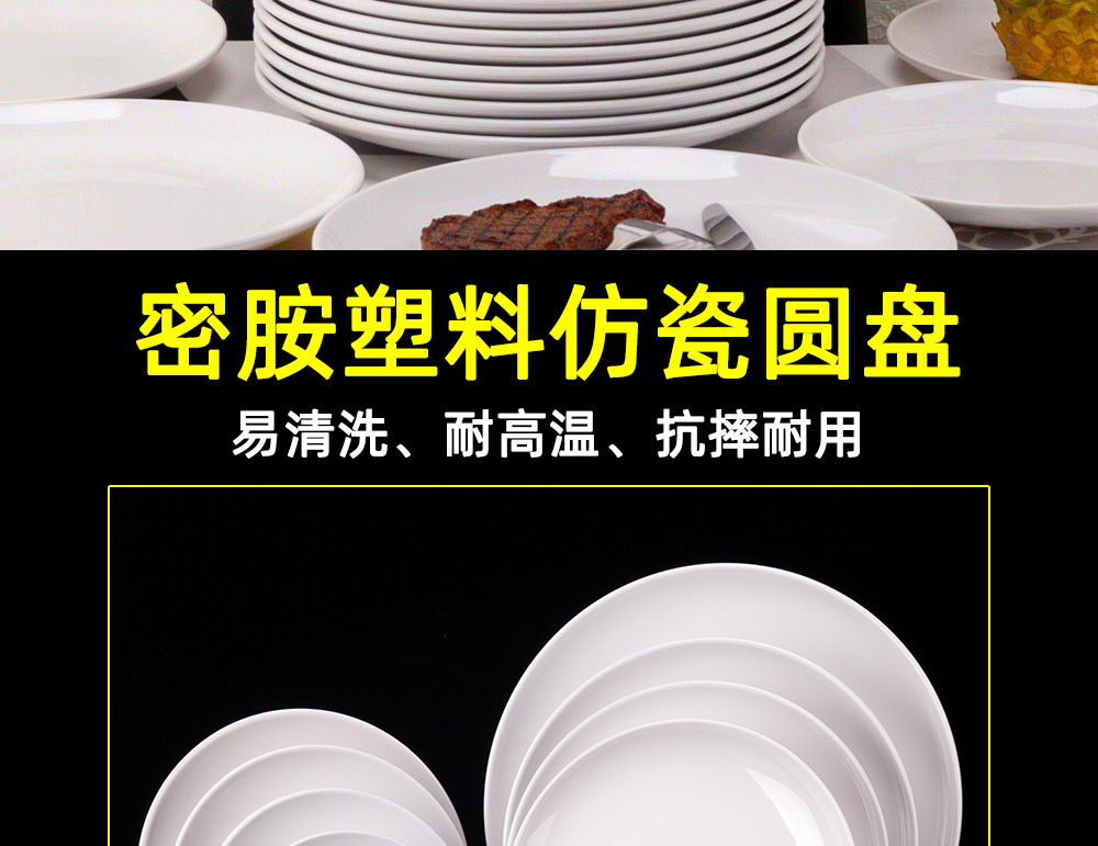 A5 고온 내성 화이트 디스크 멜라민 모방 도자기 플라스틱 식기 레스토랑 접시 호텔 뷔페 요리 상업