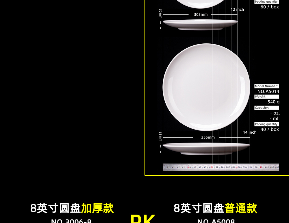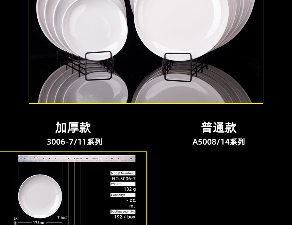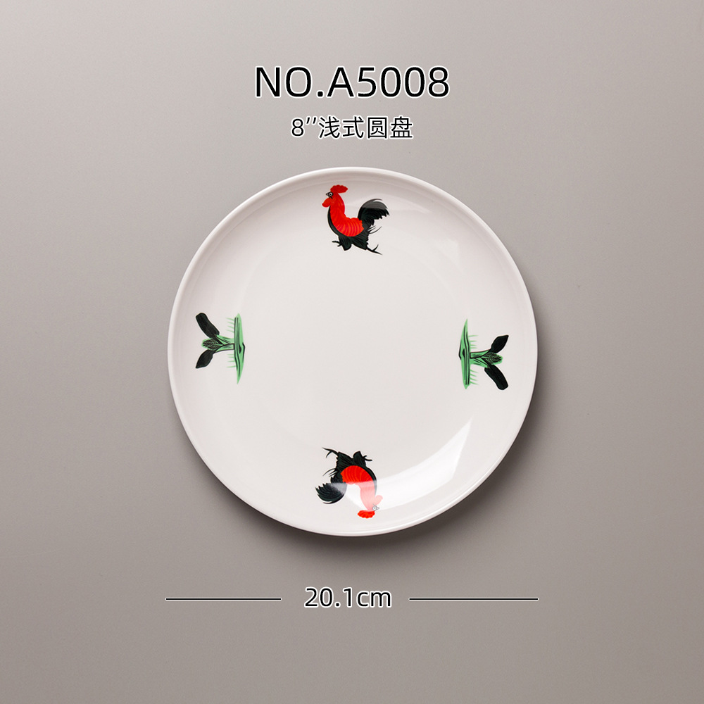 A5 고온 내성 화이트 디스크 멜라민 모방 도자기 플라스틱 식기 레스토랑 접시 호텔 뷔페 요리 상업스토어 가기