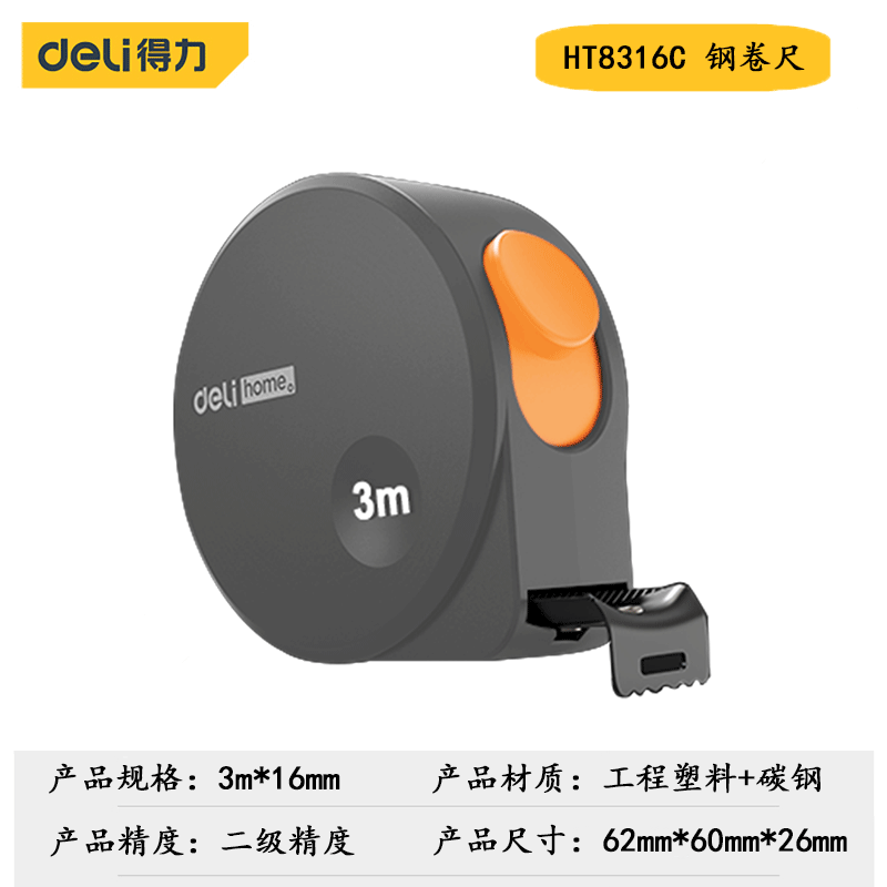 델리 툴 홈 시리즈 3/5m 고정밀 가정용 스틸 테이프 두꺼운 측정 링 박스 눈금자 HT8316 19스토어 가기