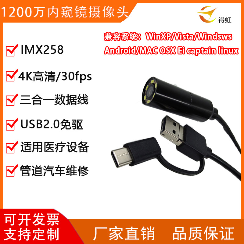 4K 12 백만 IMX258 카메라 내시경 파이프 감지 HD 검출기 헤드 USB 드라이브 프리 자동 초점스토어 가기