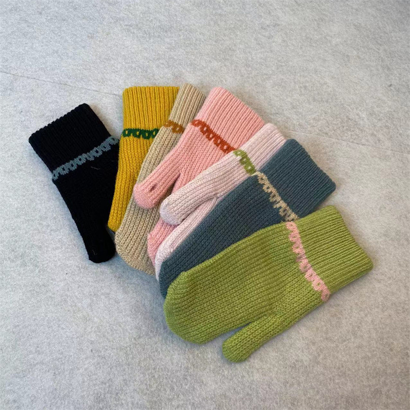 장갑 여성용 겨울 따뜻한 누출 손가락 터치 스크린 손 구렁이 올 인클루시브 방한 한국식 니트 울 스위트 트렌디