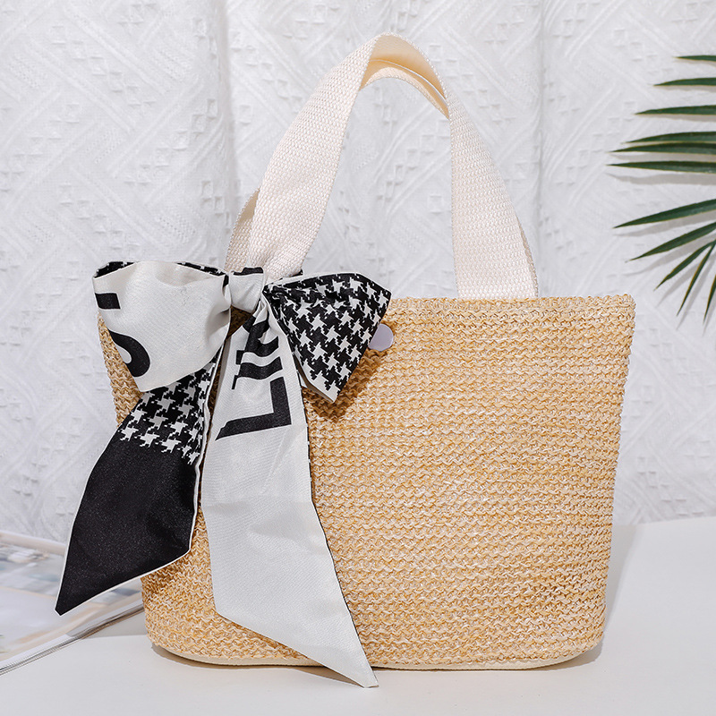 • 흑백 격자 무늬 밀짚 가방 (빈 봉투)