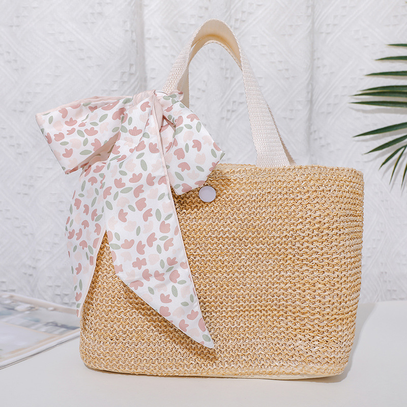 • 핑크 꽃 짚 짠 가방 (빈 가방)