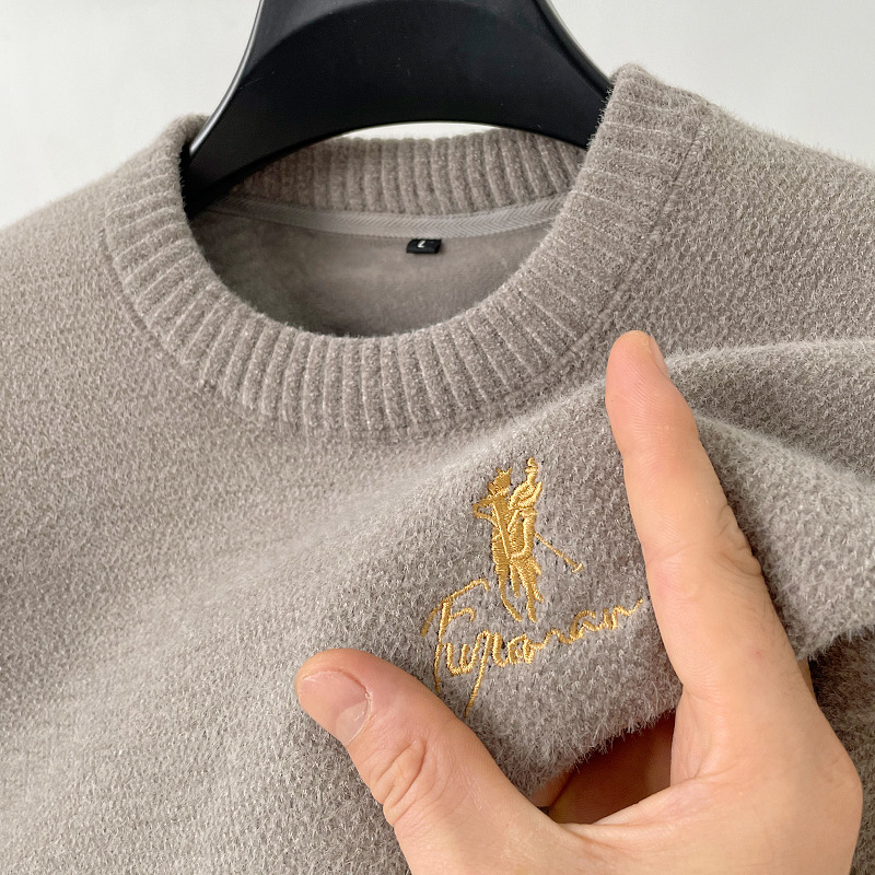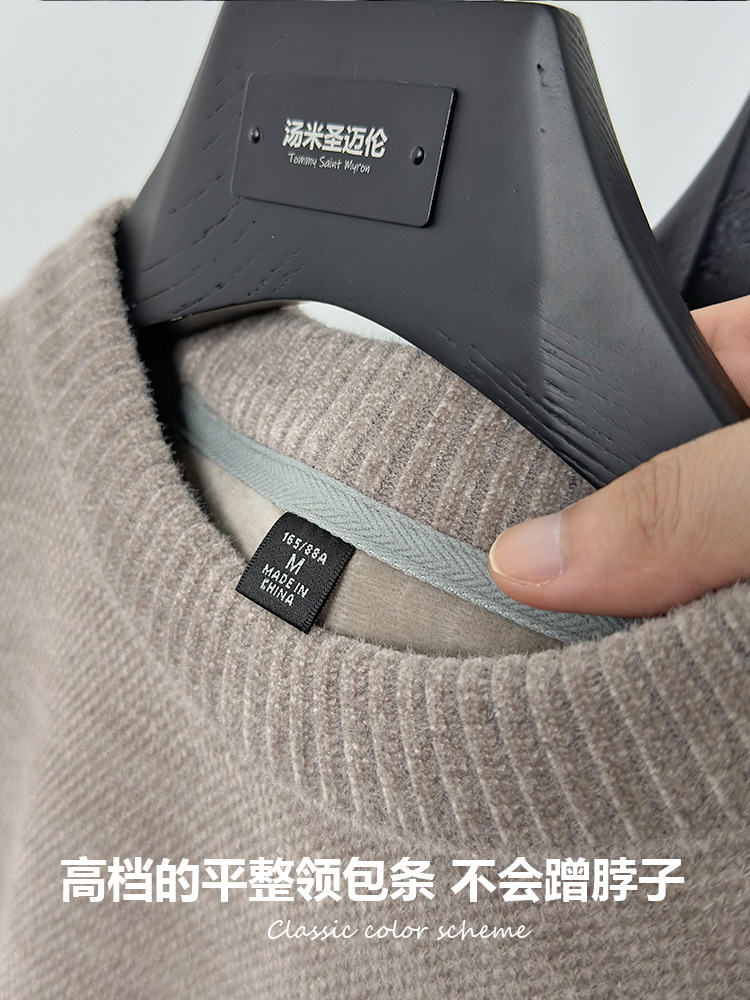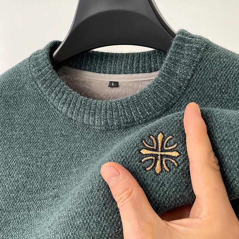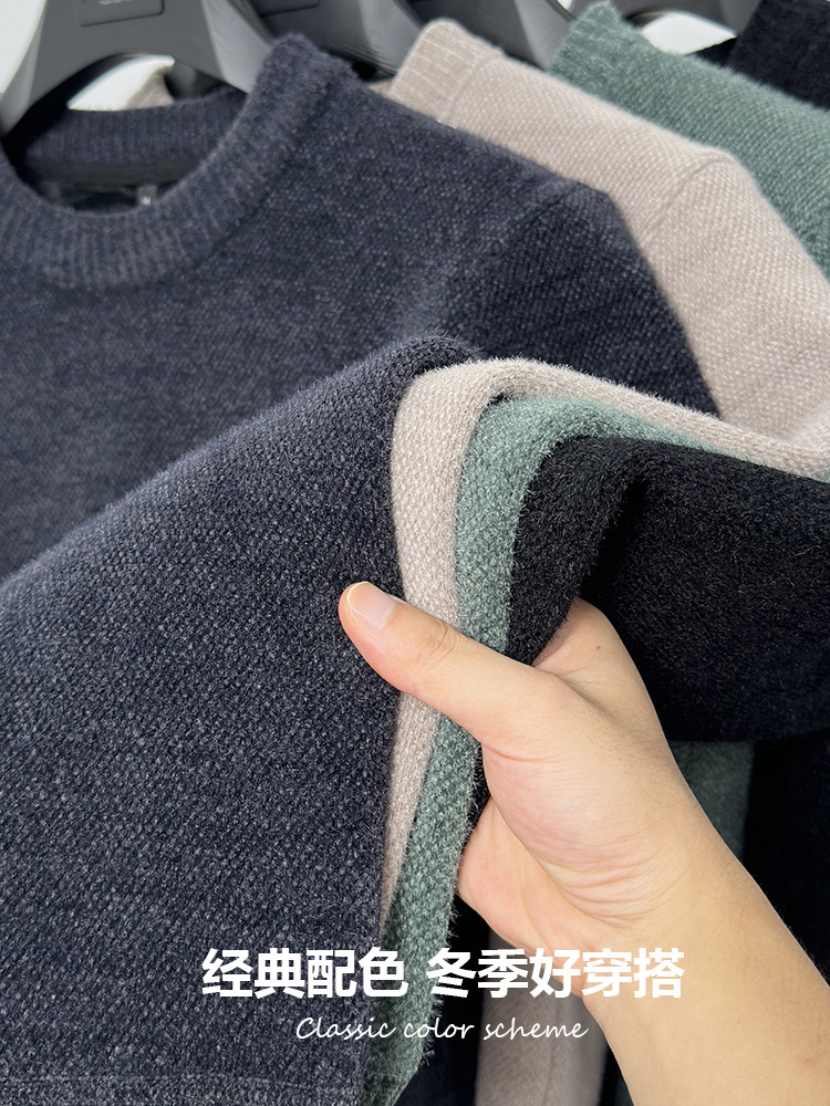 겨울 셔닐 스웨터 남자의 기모 두꺼운 남자의 라운드 넥 따뜻한 탑 벨벳 니트 베이스 셔츠 유행스토어 가기