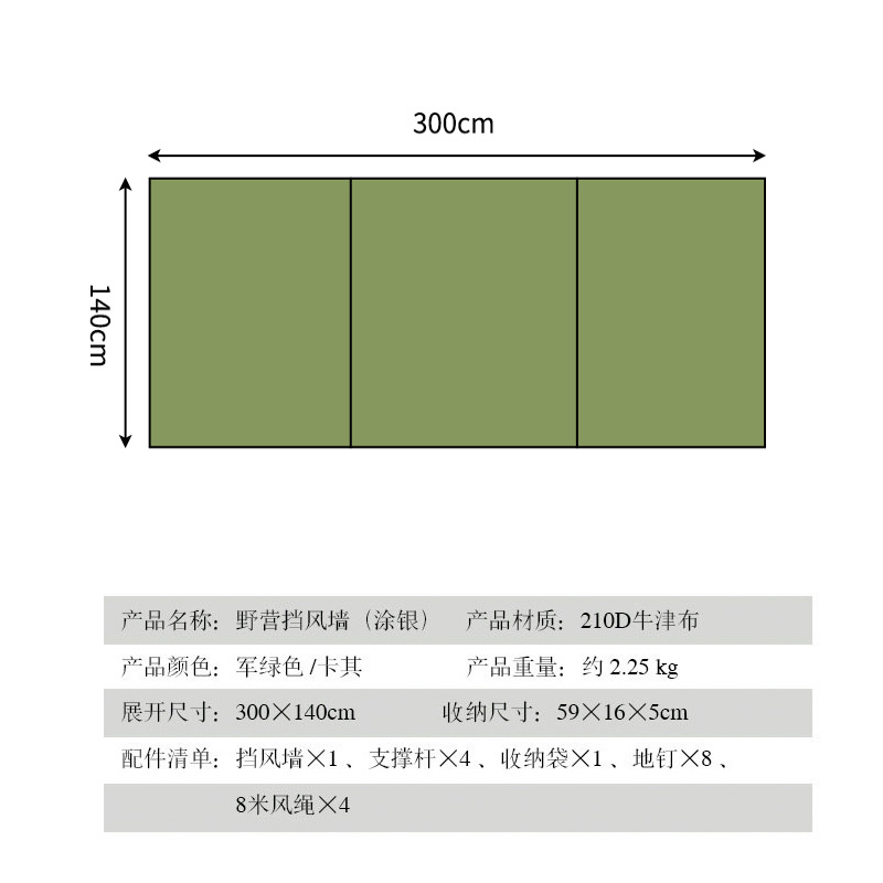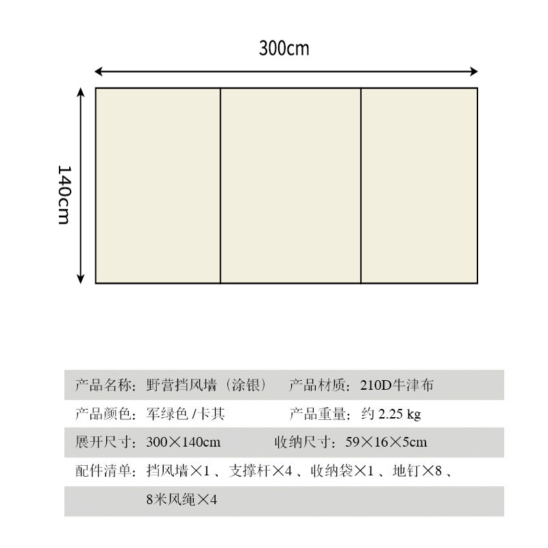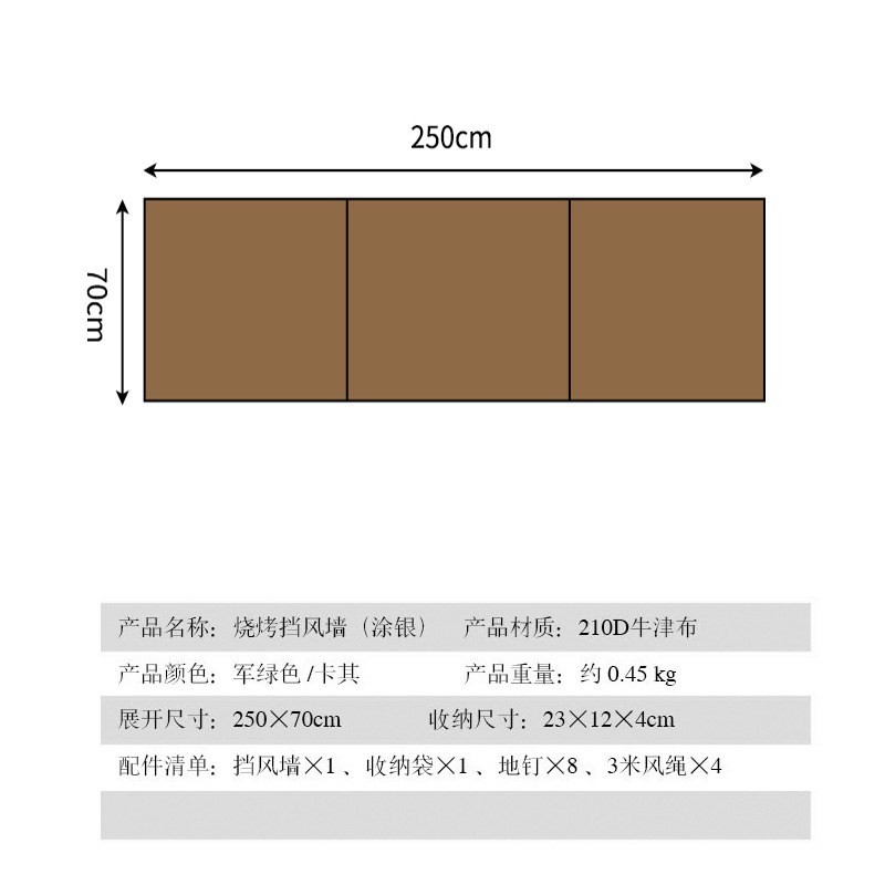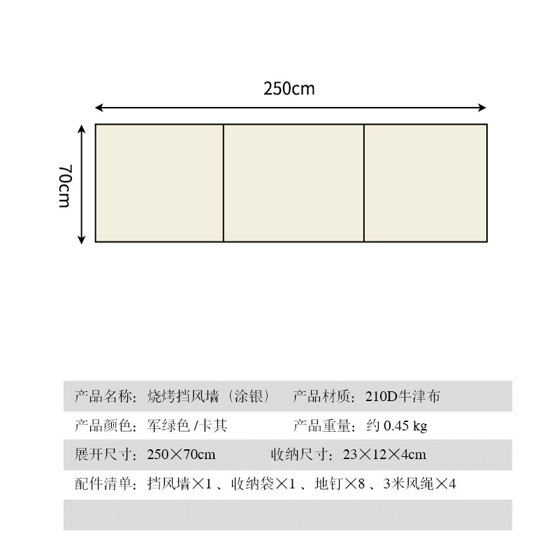 • 카키 [스몰 사이즈 직사각형 250_70cm 지지대 없음]