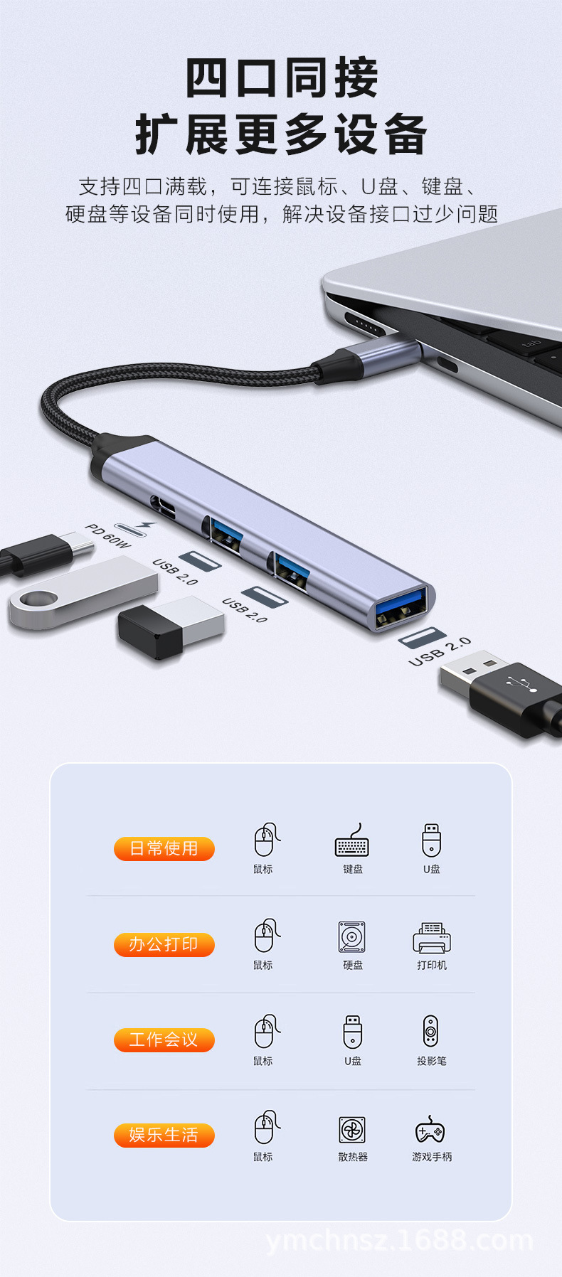 USB 확장 도크 타입-C 허브 1-4포트는 화웨이 태블릿, 휴대폰, 노트북 확장 포트에 적합합니다.스토어 가기