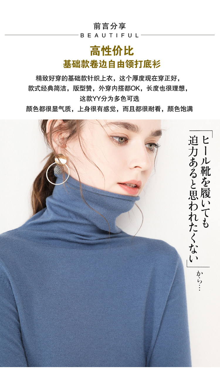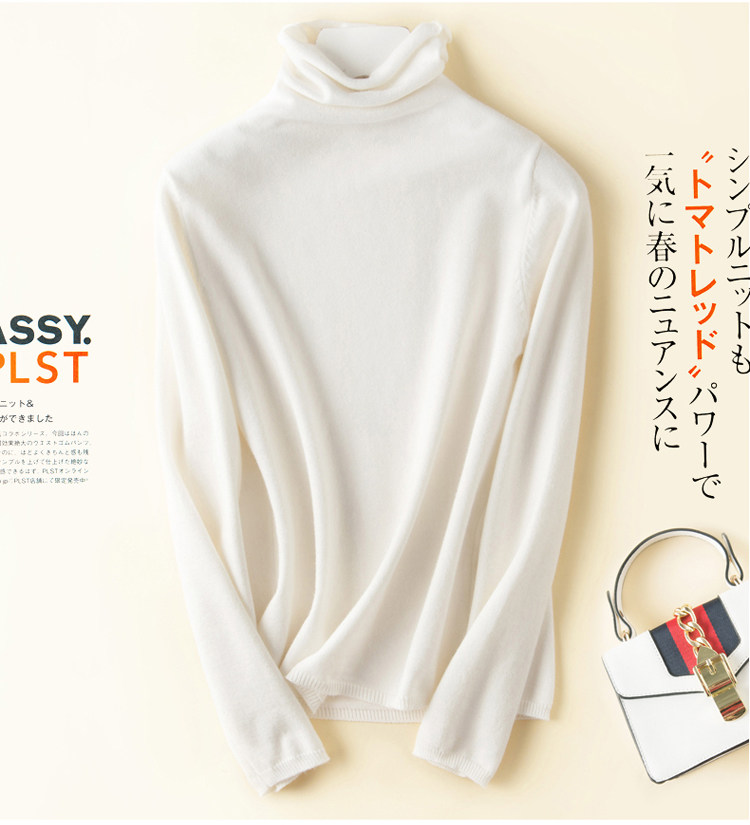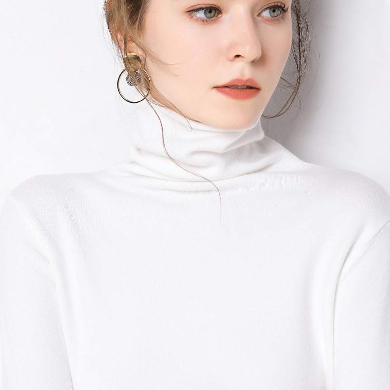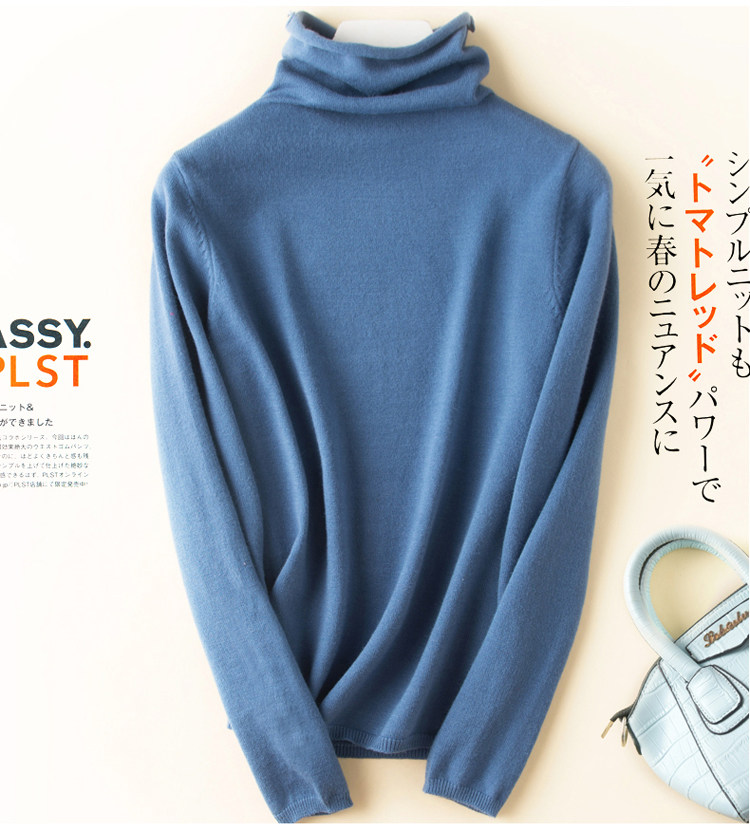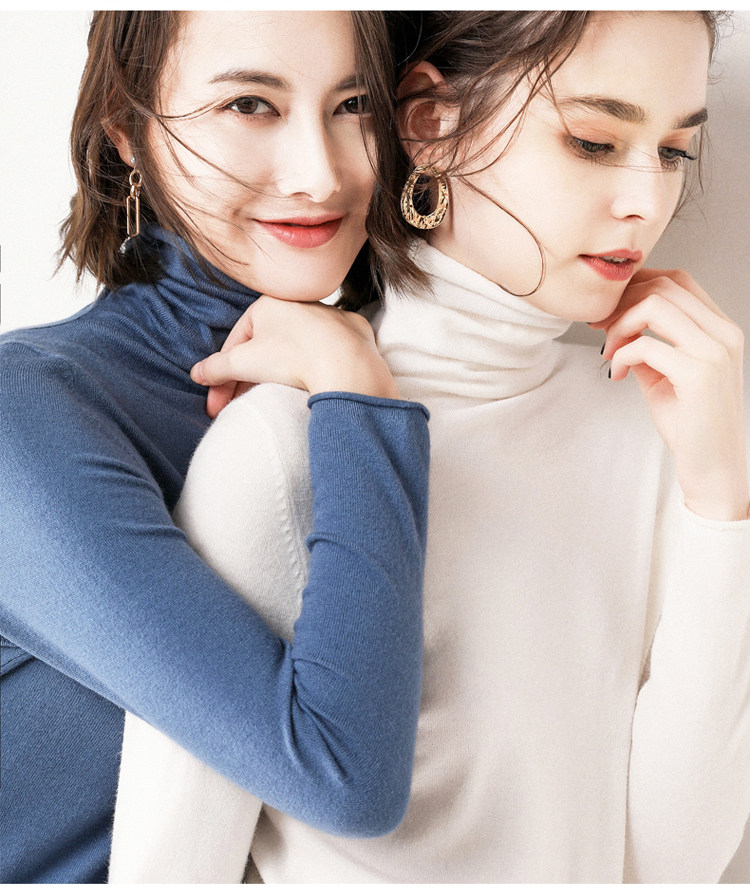 가을과 겨울 새로운 하이 칼라 하의 셔츠 긴팔 니트 스웨터 풀오버 스웨터 여성용 롤업 파일 모든 매치 얇은 바닥 셔츠스토어 가기