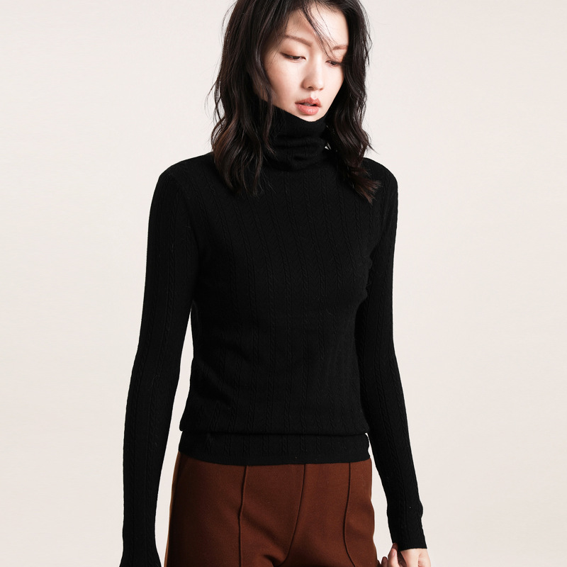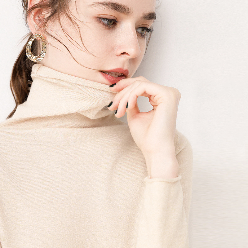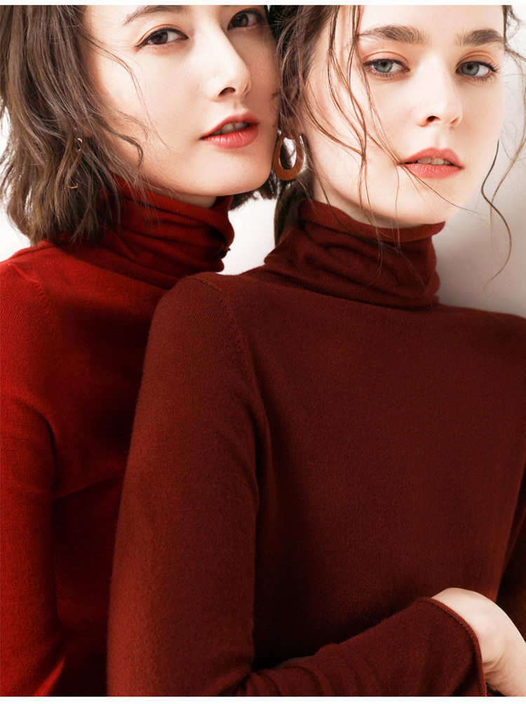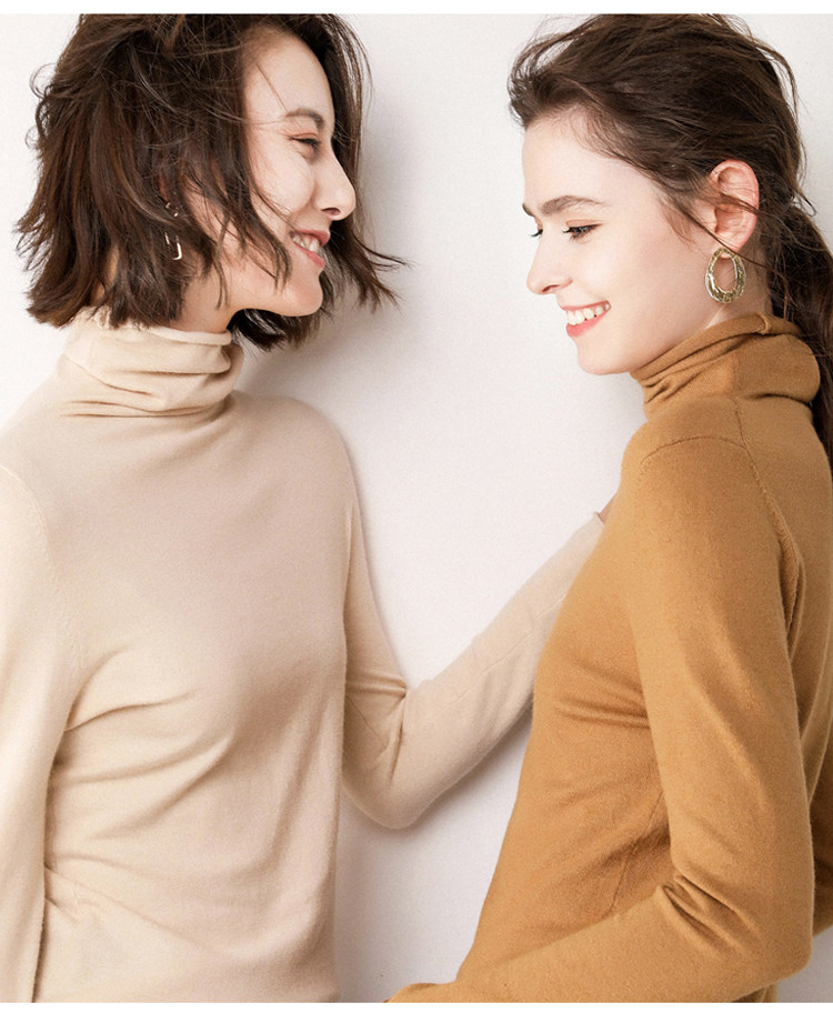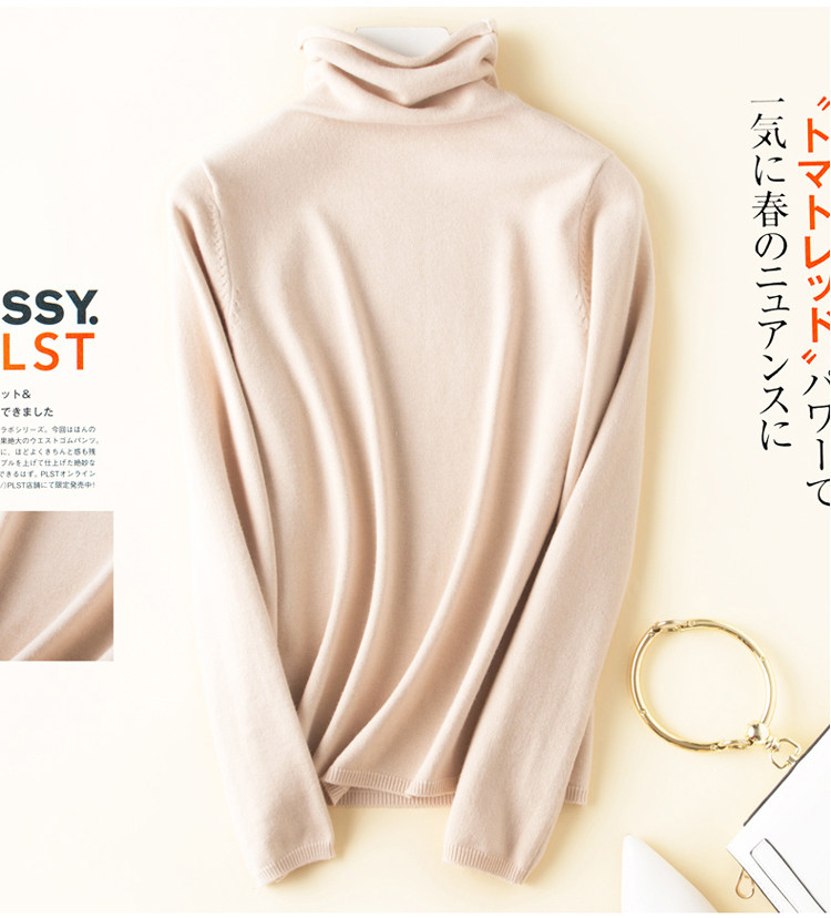 가을과 겨울 새로운 하이 칼라 하의 셔츠 긴팔 니트 스웨터 풀오버 스웨터 여성용 롤업 파일 모든 매치 얇은 바닥 셔츠스토어 가기
