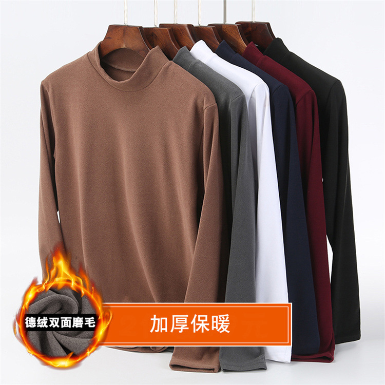 학생용 세미 하이 칼라 티셔츠 남성용 가을과 겨울 두꺼운 홍콩 스타일 커플 스웨터 트렌디 한 기본 멀티 컬러 바닥 스웨터