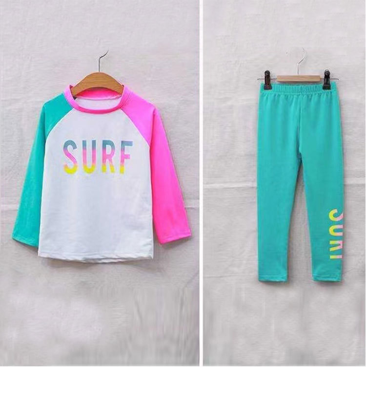 한국 어린이 수영복 여아 중간 및 큰 어린이 스플릿 아기의 속건 다이빙 세트 초등학생을 위한 긴팔 자외선 차단제 수영복스토어 가기