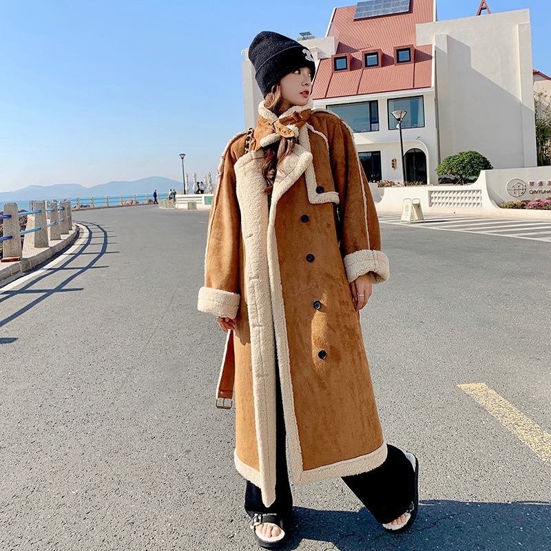 리얼 샷 2024 겨울 스웨이드 램스울 코트 여성용 플러스 벨벳 두꺼운 중간 길이 모피 올인원 코트 코튼 코트스토어 가기