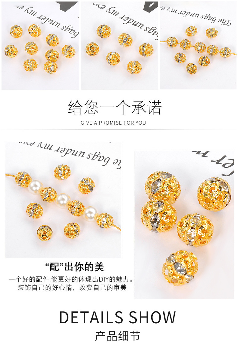 • 8mm 마이크로 모조 다이아몬드 중공 비드