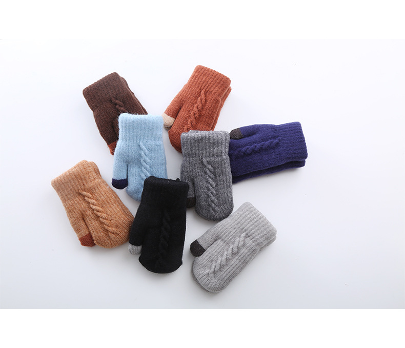 어린이용 눈놀이 장갑 겨울용 벨벳 안감 두꺼운 보온 알파카 털 안감 브레이드 패턴 일체형 장갑 해외 도매스토어 가기