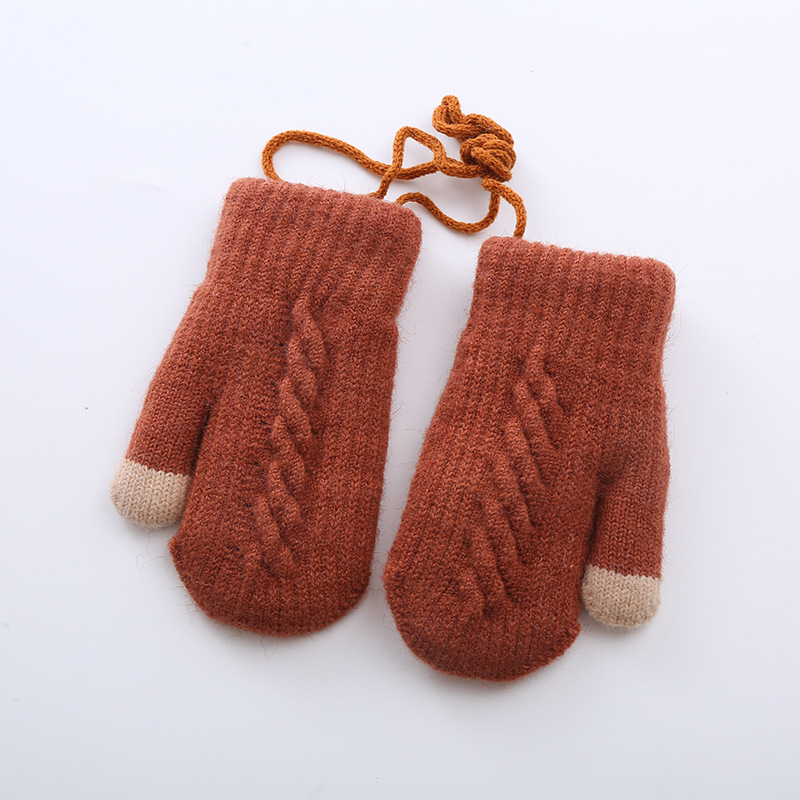어린이용 눈놀이 장갑 겨울용 벨벳 안감 두꺼운 보온 알파카 털 안감 브레이드 패턴 일체형 장갑 해외 도매