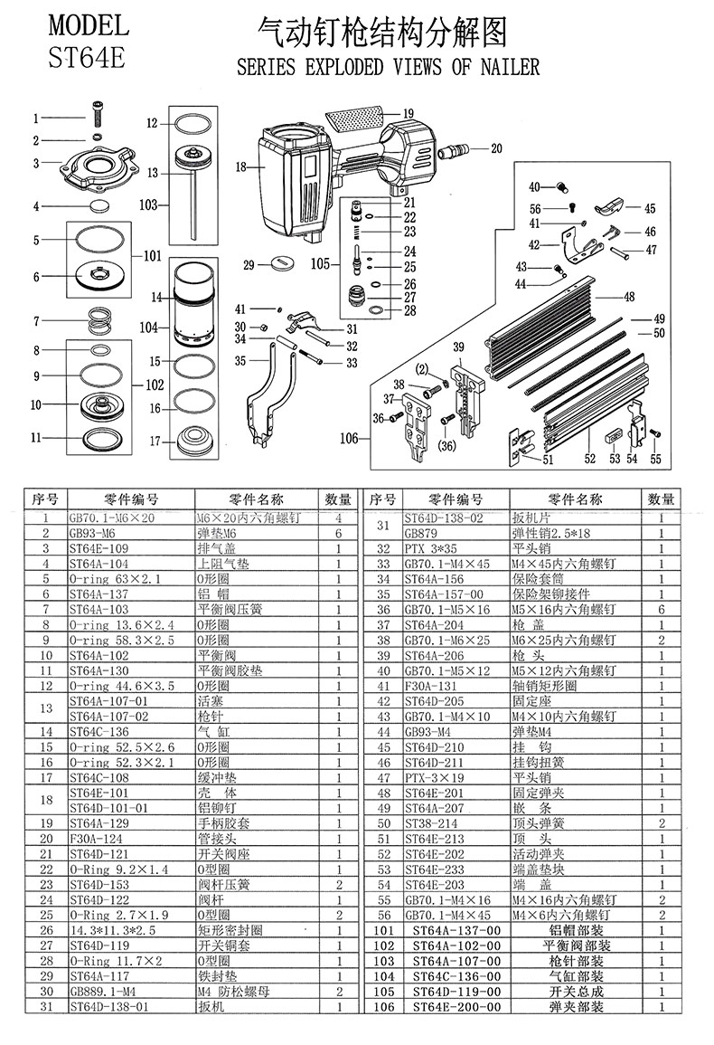 • ST64E 스틸 네일 건 1 배달 수리 키트 1 세트