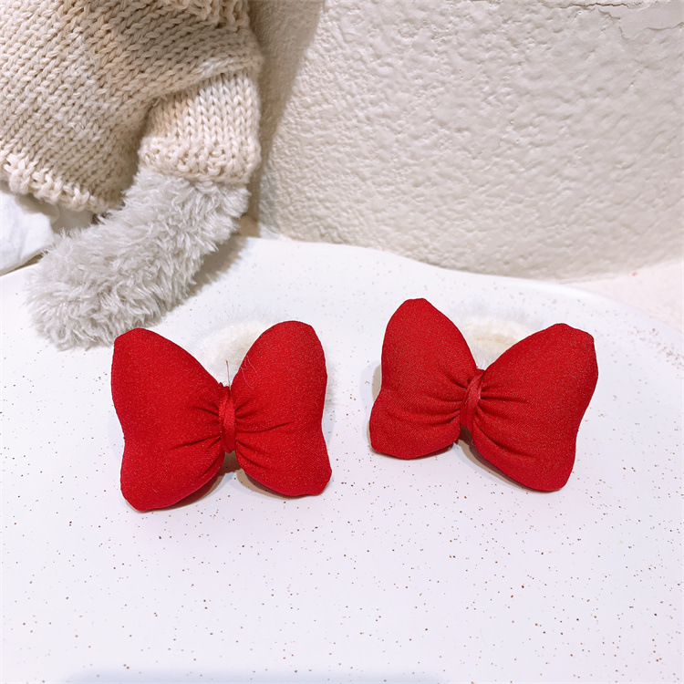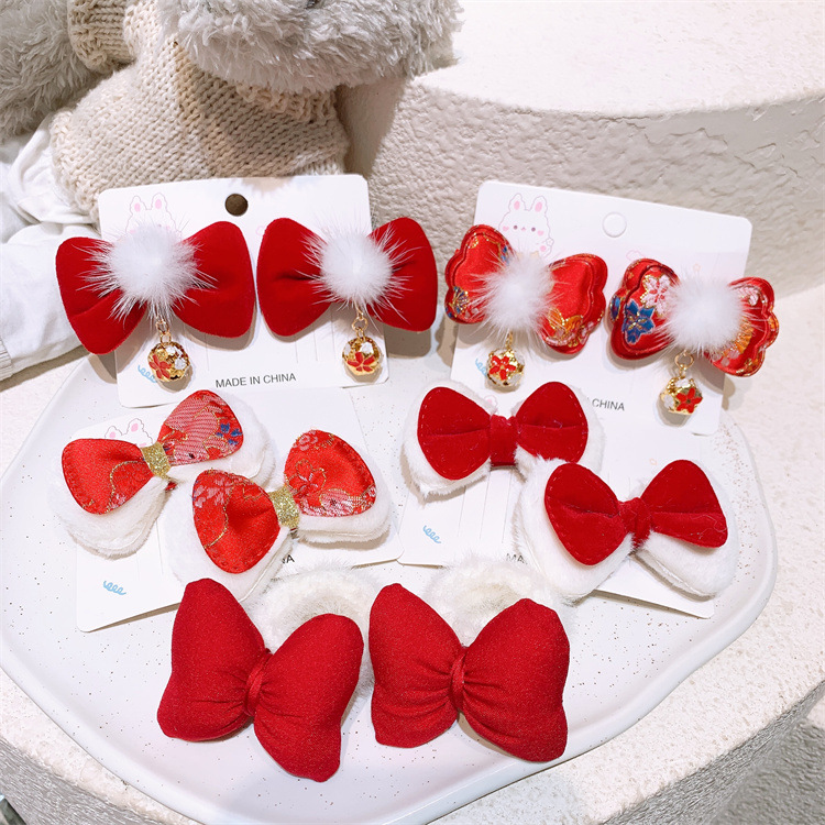 어린이 새해 빨간 활 머리핀 작은 소녀 봉제 나비 넥타이 머리핀 귀여운 아기의 새해 모자 클립