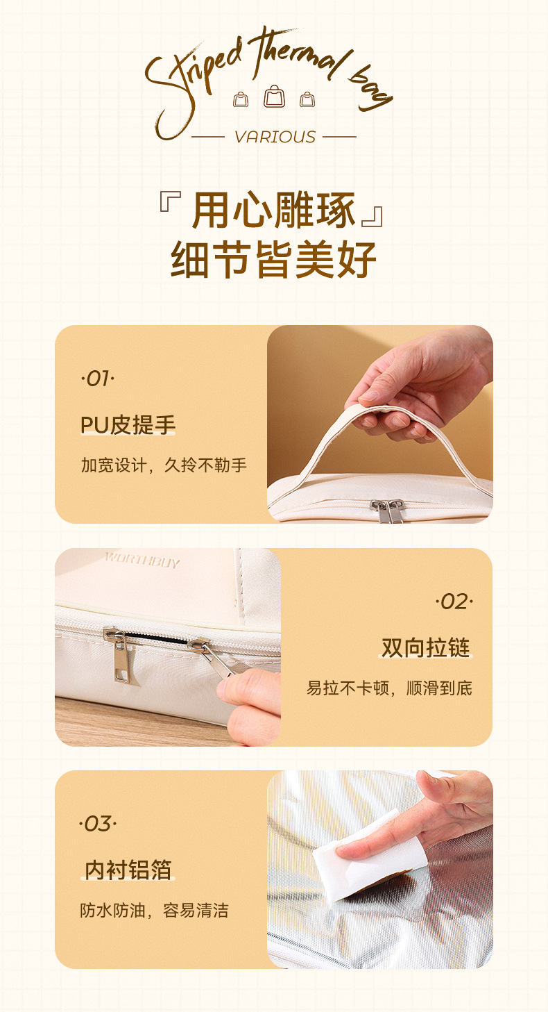 • 产品卖点:PU皮提手结实耐用,顺滑双向拉链,防水防油易清洁