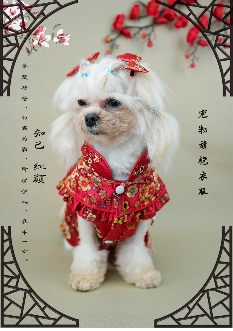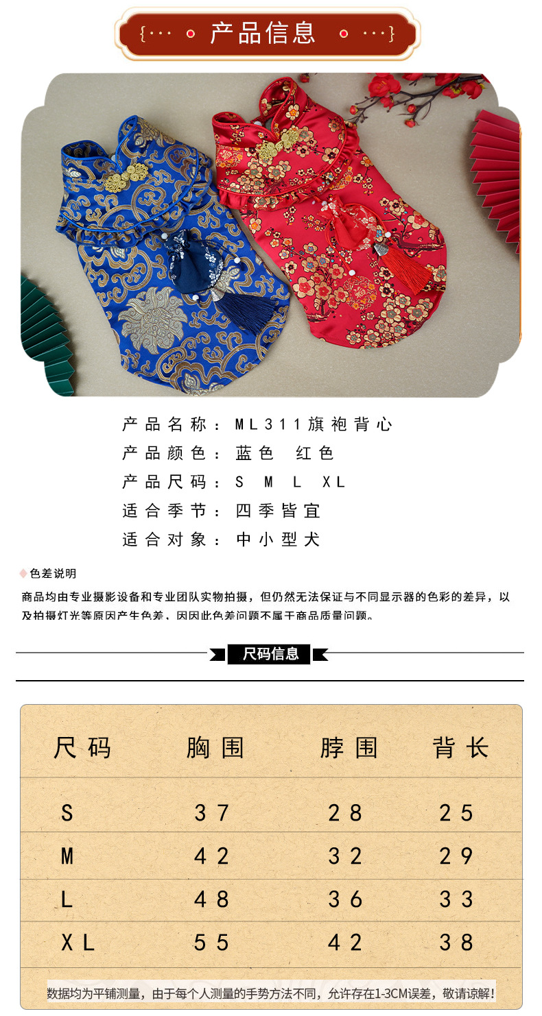 애완동물 신년 옷 신년 축제 축복 가방 탕 치파오 중소형견 테디, 공장 아울렛스토어 가기