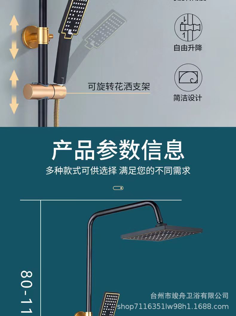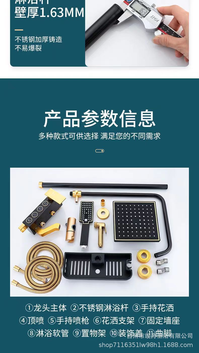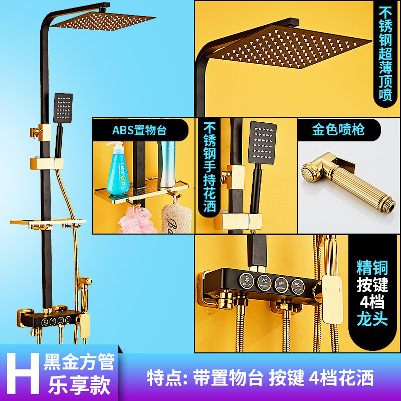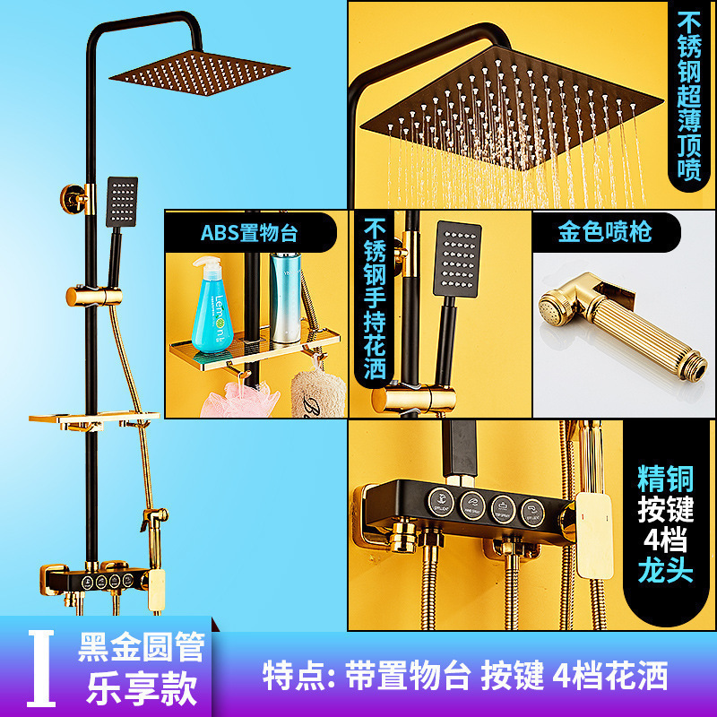 • I형(블랙 골드 스테인리스 버튼 4단 샤워기) 사각 튜브