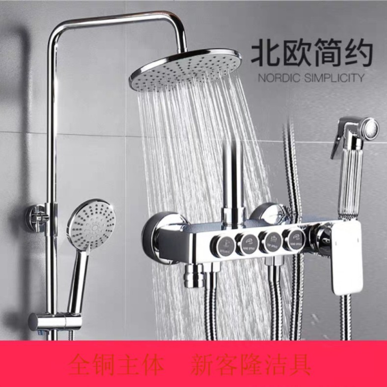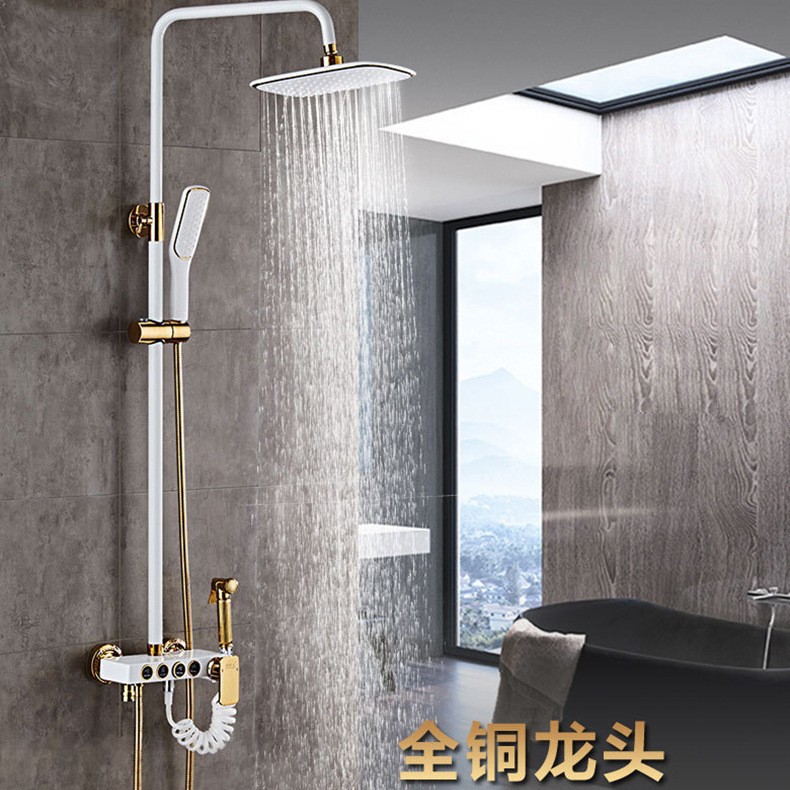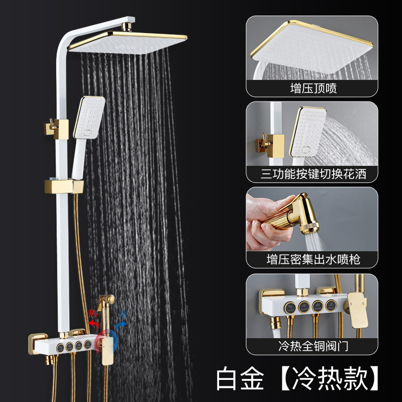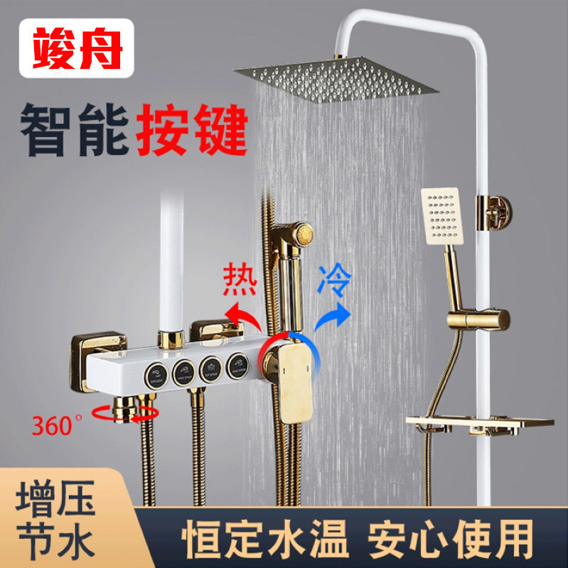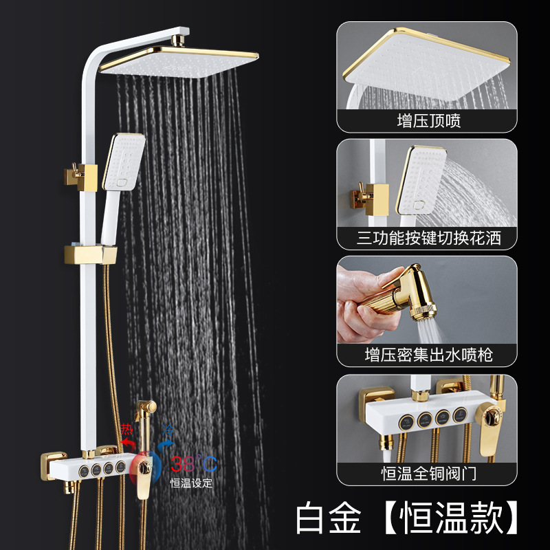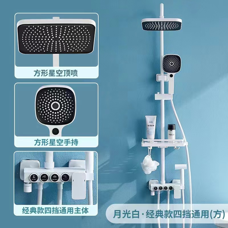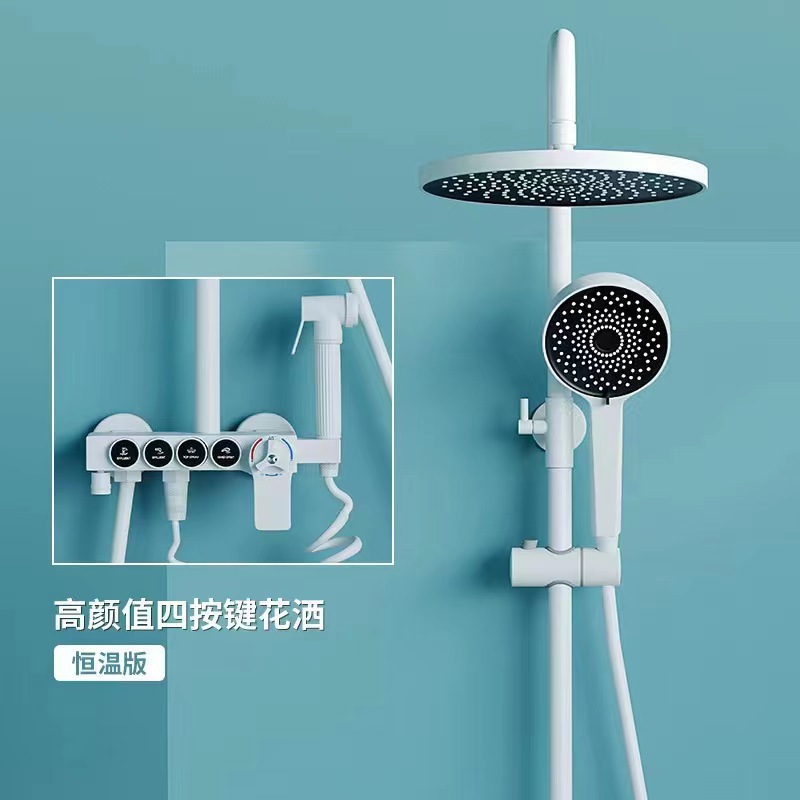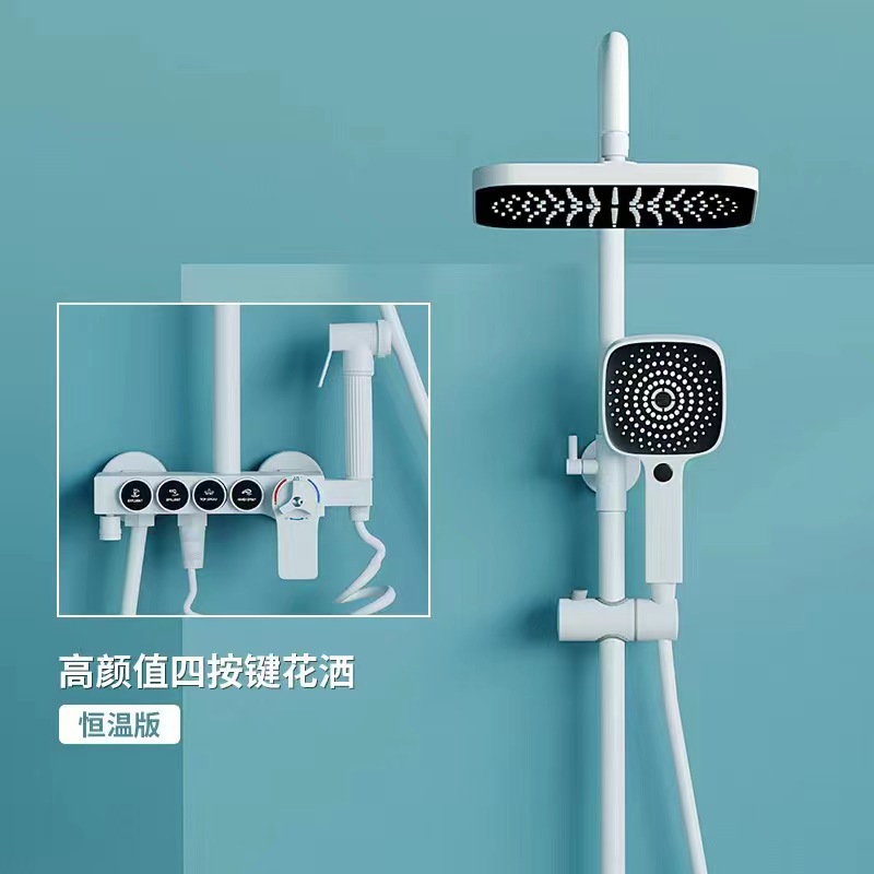 • A30 모델(우아한 흰색 전체 구리 버튼 4단 샤워기) 사각 상단 스프레이 항온
