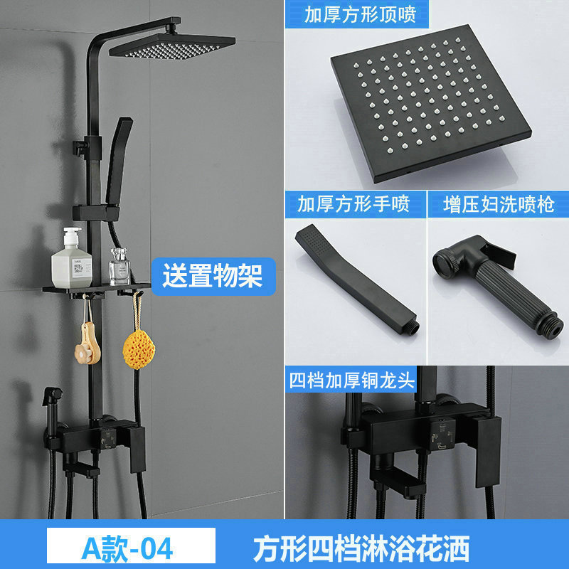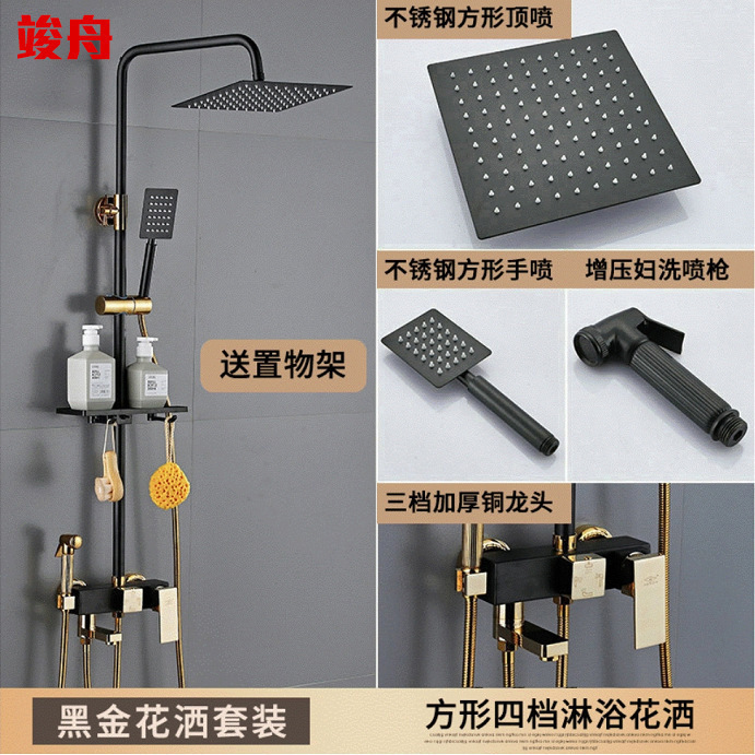 • A18 (블랙 골드 구리 키 4 단 샤워) 사각 튜브