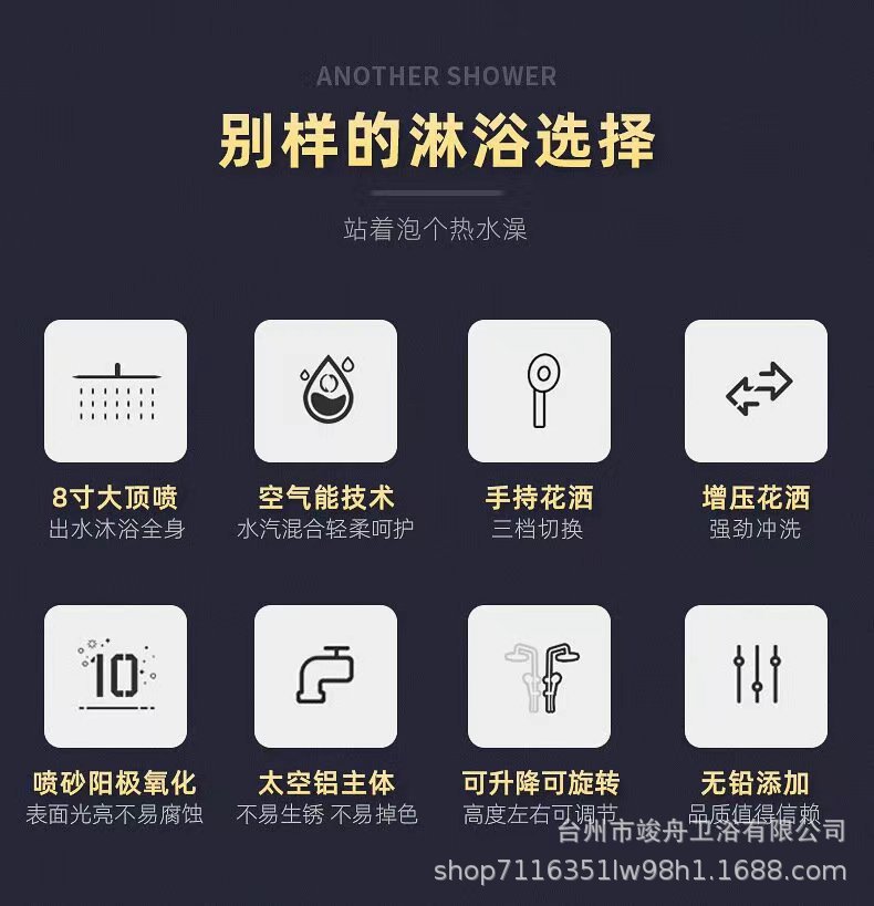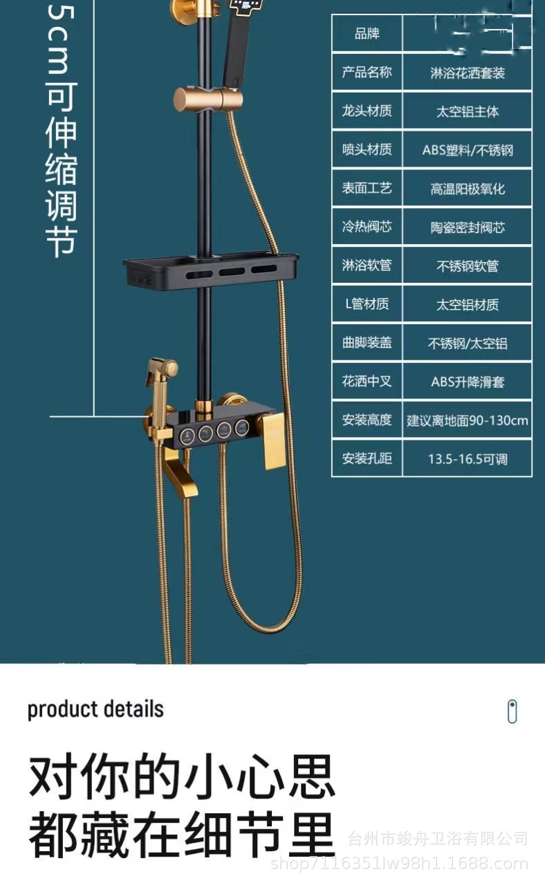 • 모델 A(블랙 골드 스페이스 알루미늄 버튼 4단 샤워기)