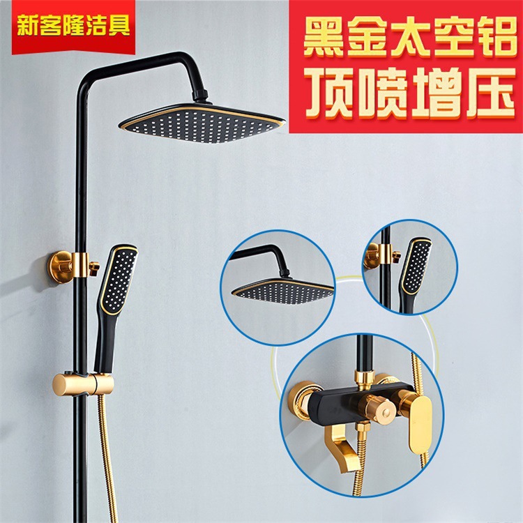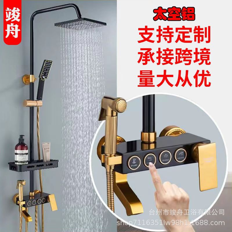 공간 알루미늄 샤워 세트 가정용 총 그레이 피아노 키 욕실 부스터 노즐 리프팅 스테인레스 스틸 샤워스토어 가기