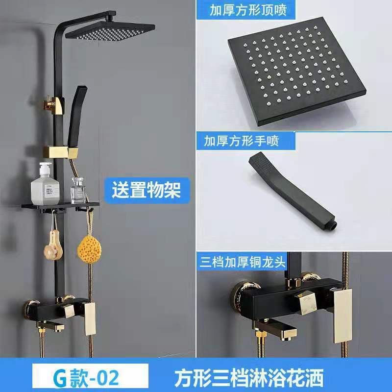 • 모델 C(블랙 골드 스페이스 알루미늄 중국식 사각 손잡이 3단 샤워기)