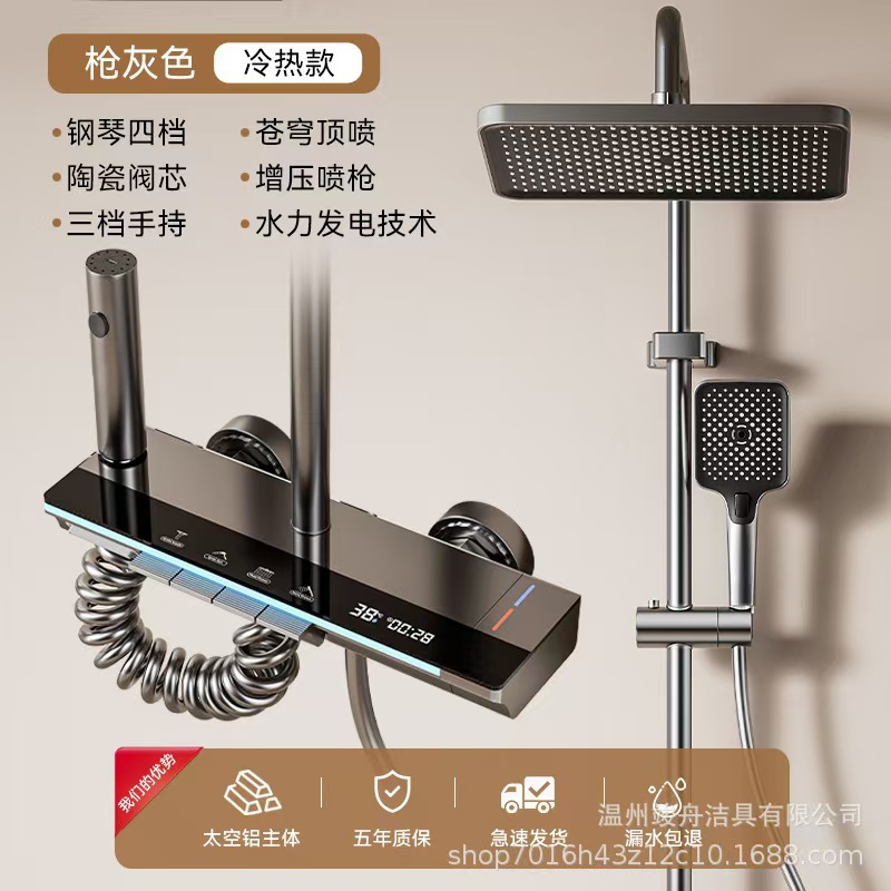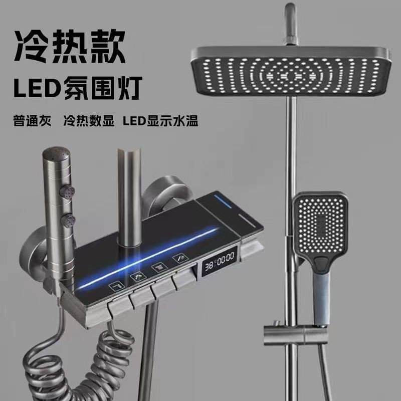 • A37 모델(고급 그레이 스페이스 알루미늄 4단 샤워기) 디지털 디스플레이 + 라이트 스트립