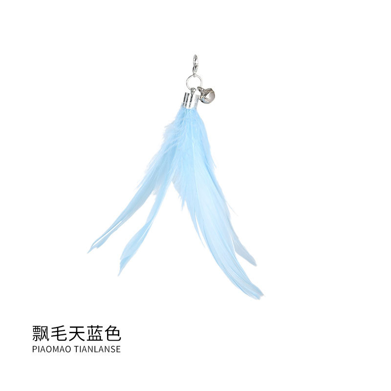 새로운 제조 업체 도매 긴 막대 깃털 와이어 벨트 벨 고양이 스틱 교체 헤드 바이트 방지 대화 형 셀프 하이 로드스토어 가기