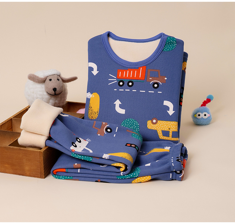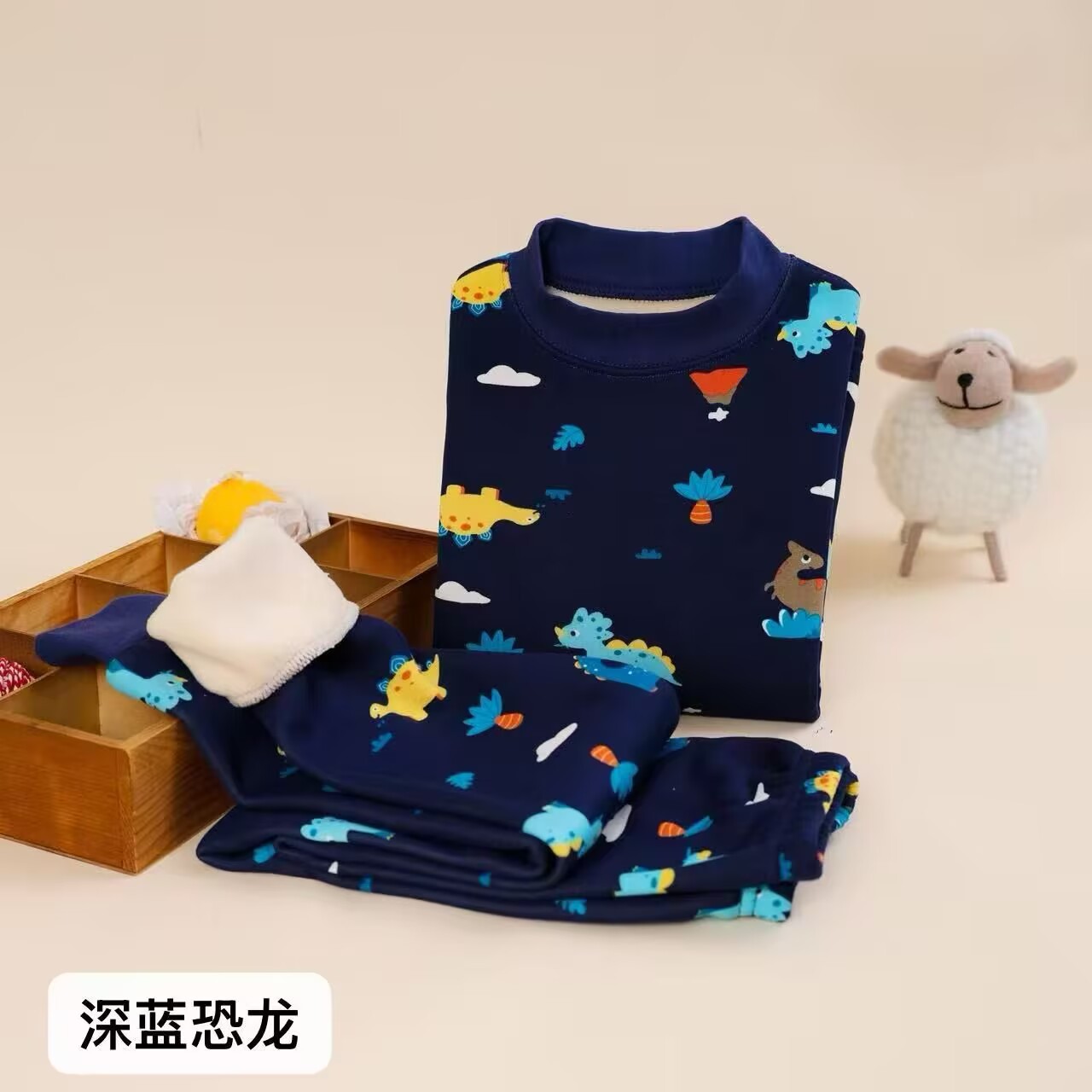 가을과 겨울 새로운 어린이 기모 열 속옷 세트 만화 소년 소녀를위한 중간 칼라 두꺼운 홈 옷을 인쇄