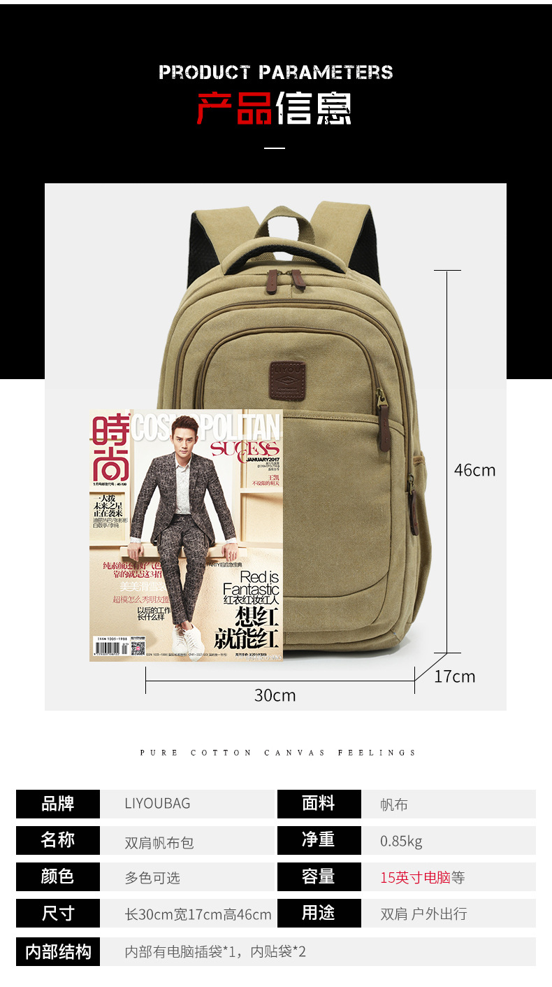 남자의 복고풍 배낭 캔버스 컴퓨터 레저 여행 예술적 새로운 대학생 경량 책가방 미국 배낭스토어 가기