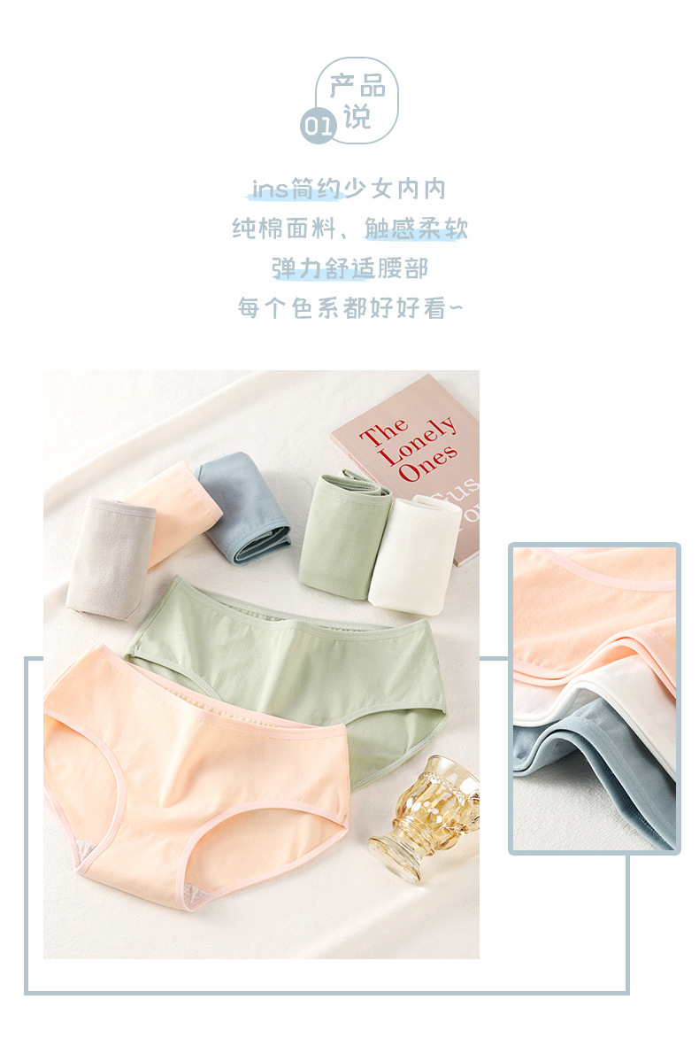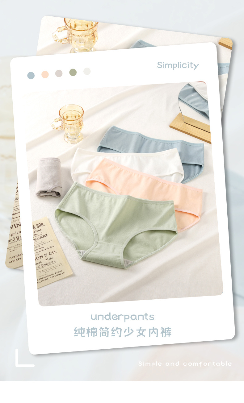 여자 속옷 순면 빗질 면 바닥 단색 심플 미드 웨이스트 편안한 여아 팬티 플러스 사이즈스토어 가기