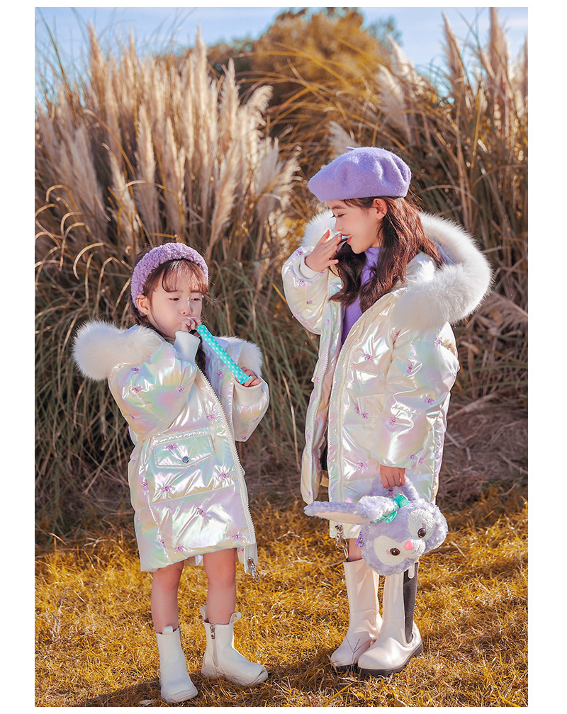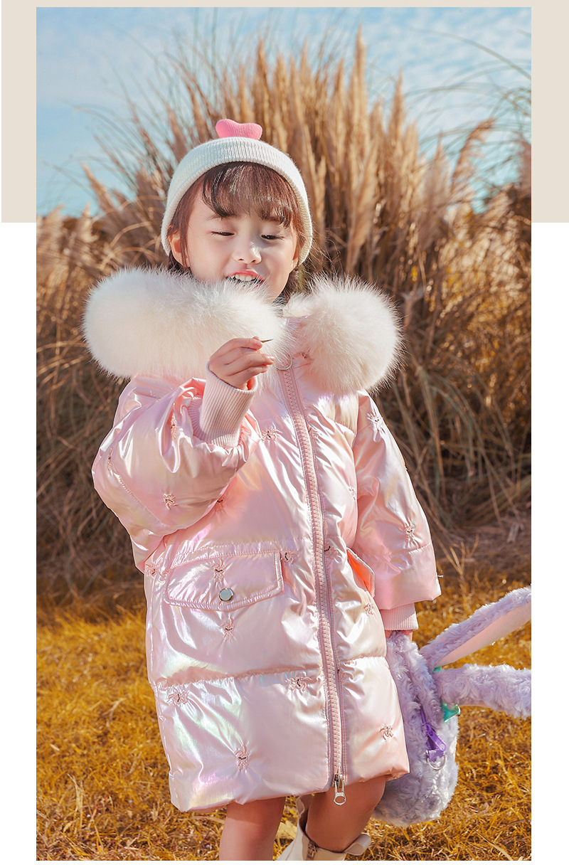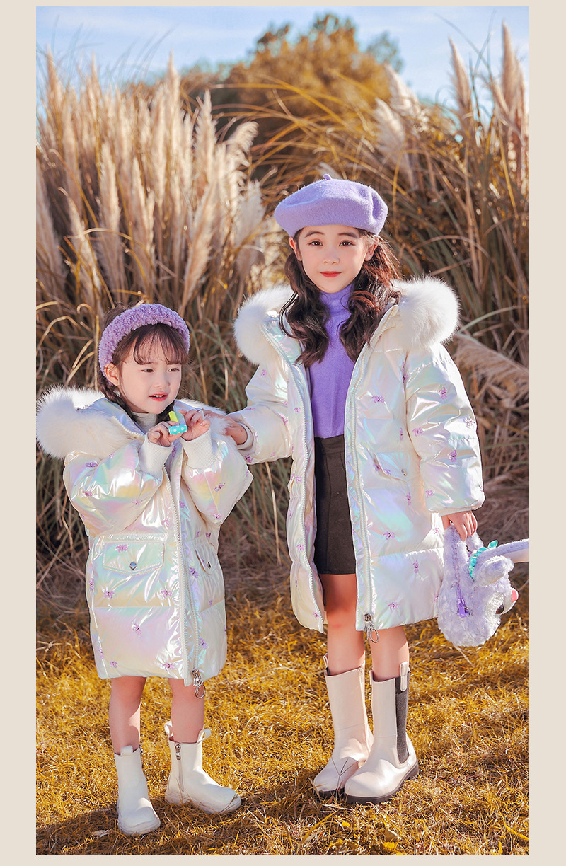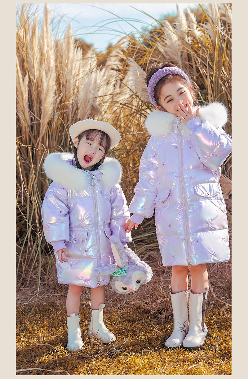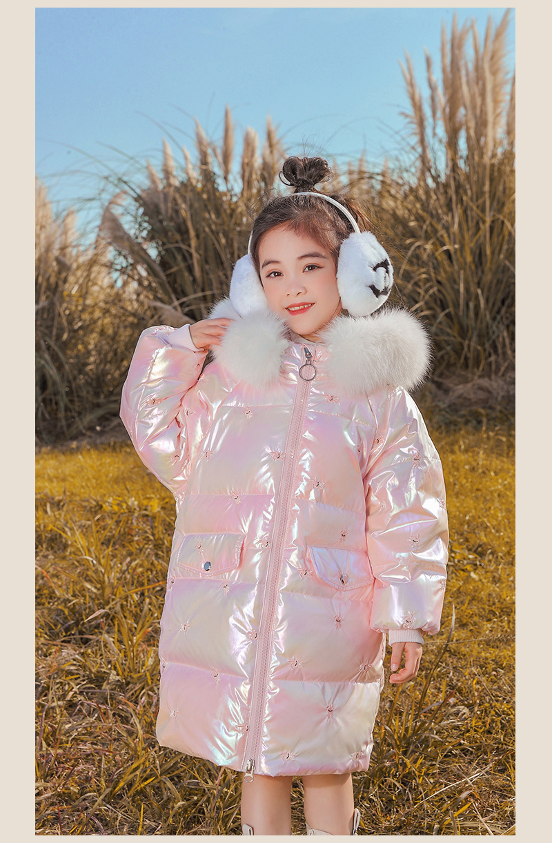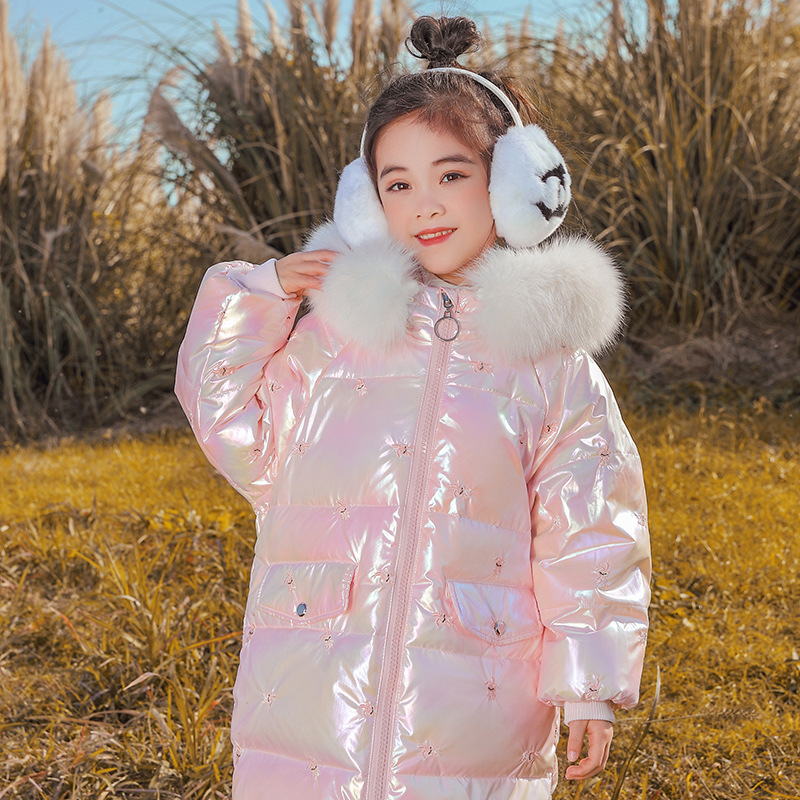 어린이 다운 재킷 소녀의 밝은 얼굴 워시 프리 2022 새로운 한국 스타일 소녀의 두꺼운 자수 미드 빅 어린이 겨울 재킷