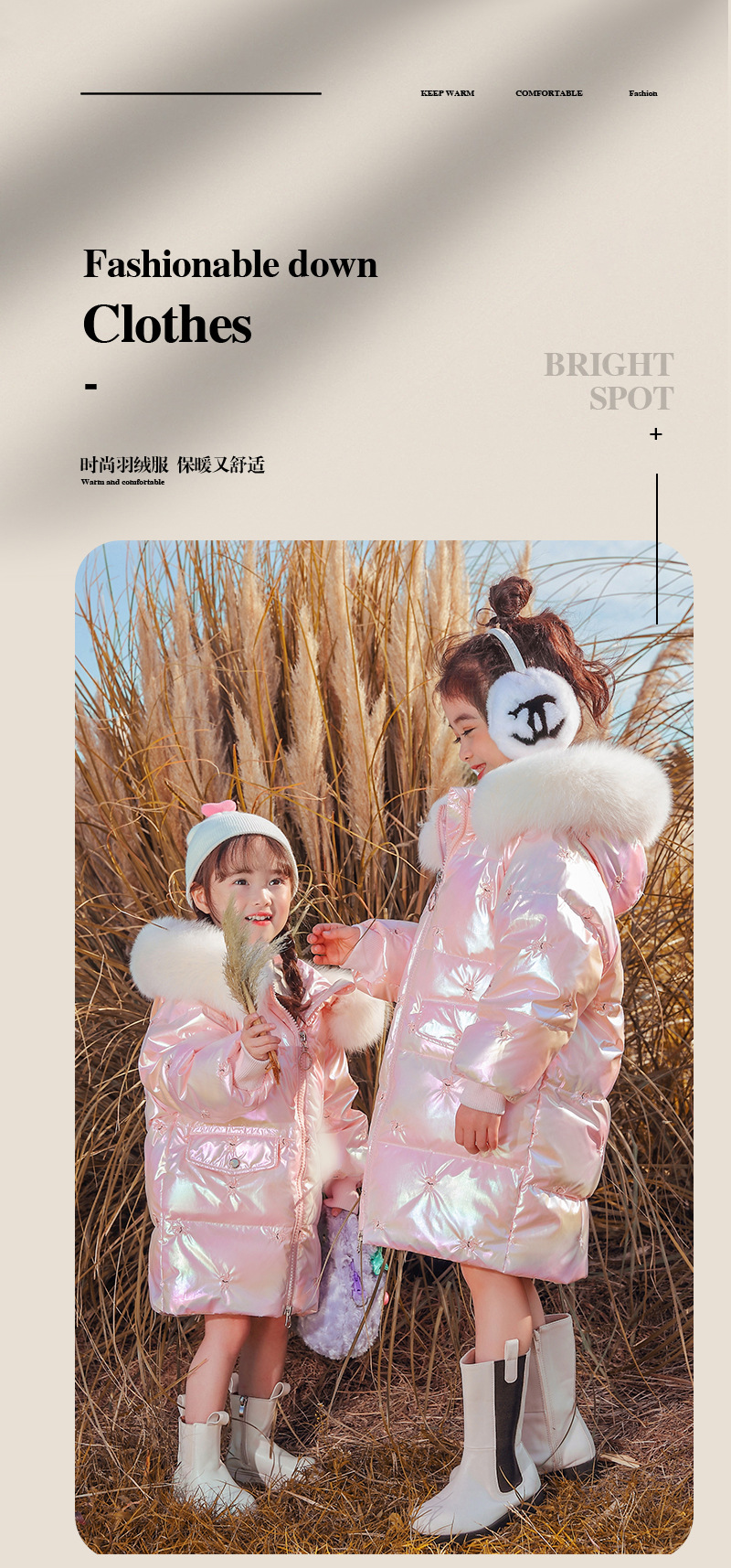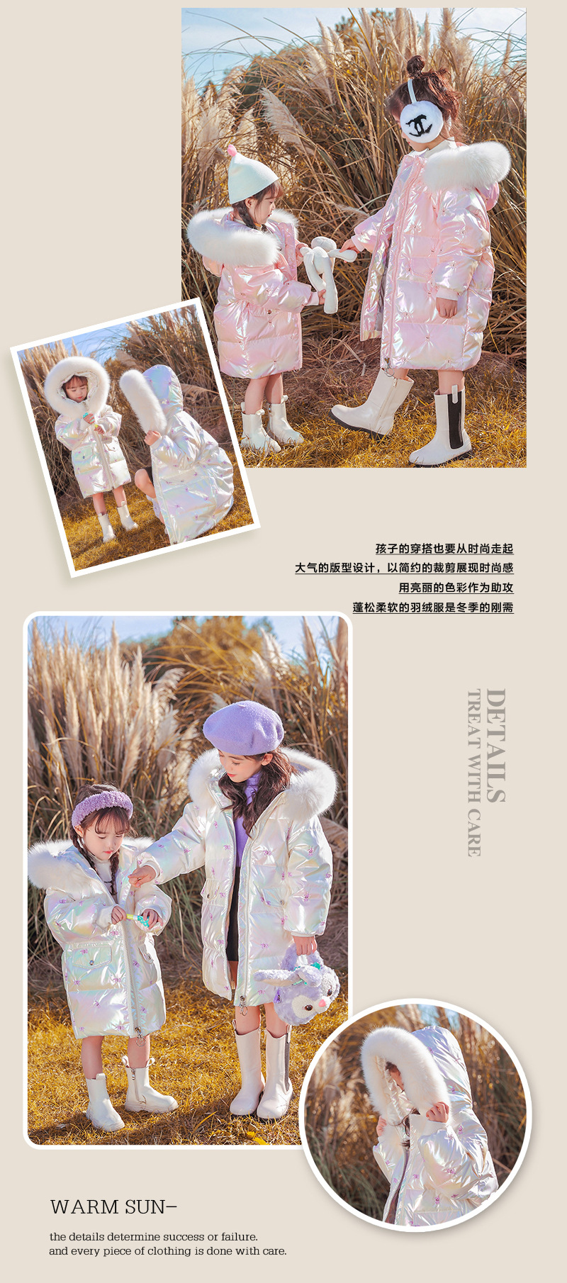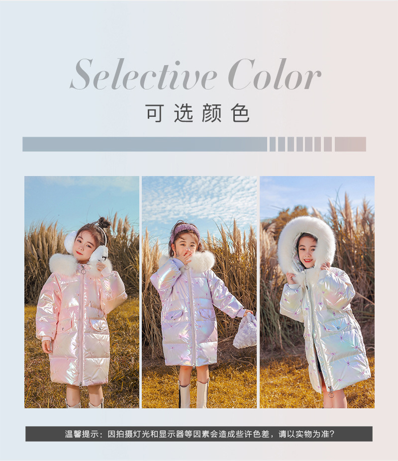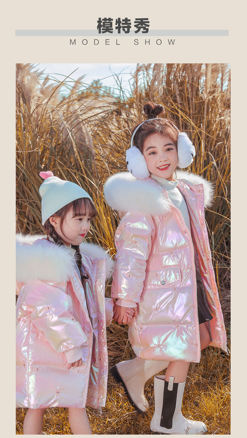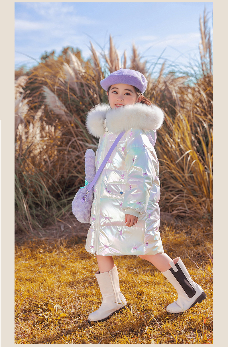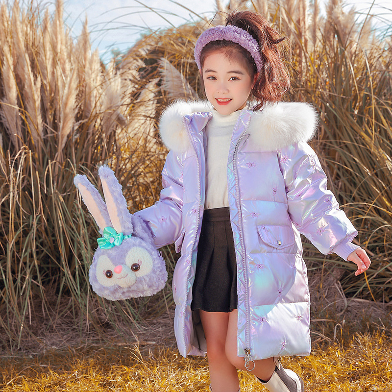 어린이 다운 재킷 소녀의 밝은 얼굴 워시 프리 2022 새로운 한국 스타일 소녀의 두꺼운 자수 미드 빅 어린이 겨울 재킷