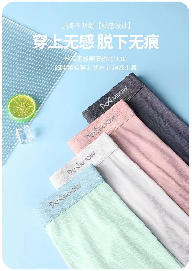 정품 남성용 속옷 통기성 고급 남성용 아이스 실크 원단 흡습 발한 사각 팬티 가볍고 무봉제 빠른 건조
