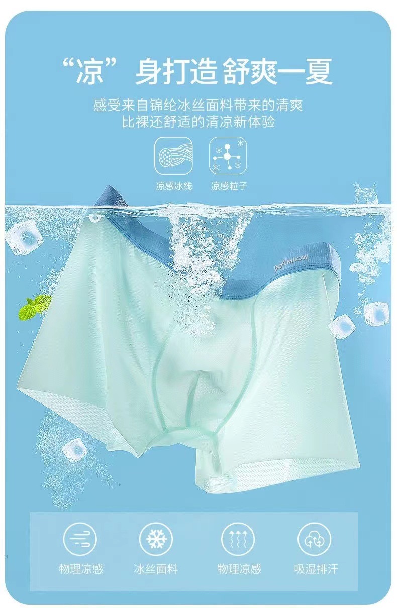 정품 남성용 속옷 통기성 고급 남성용 아이스 실크 원단 흡습 발한 사각 팬티 가볍고 무봉제 빠른 건조스토어 가기