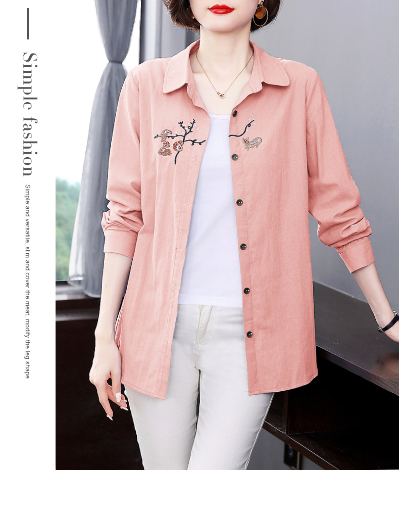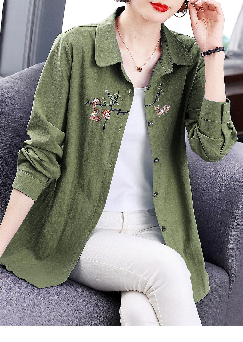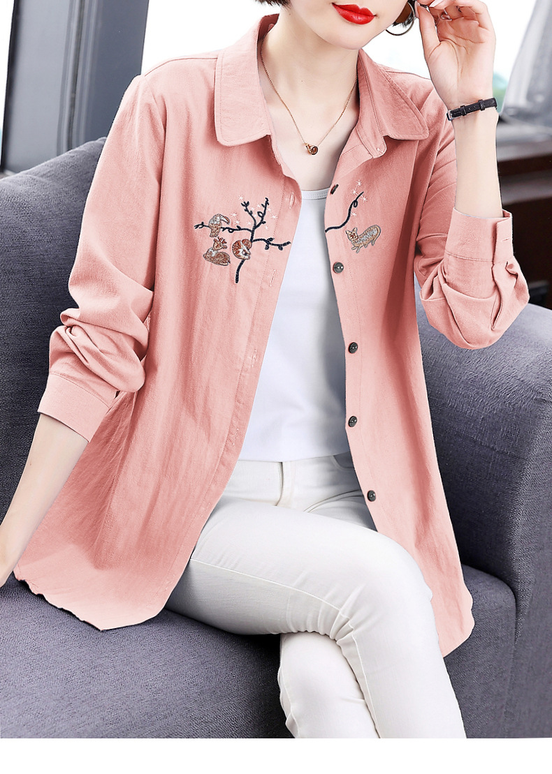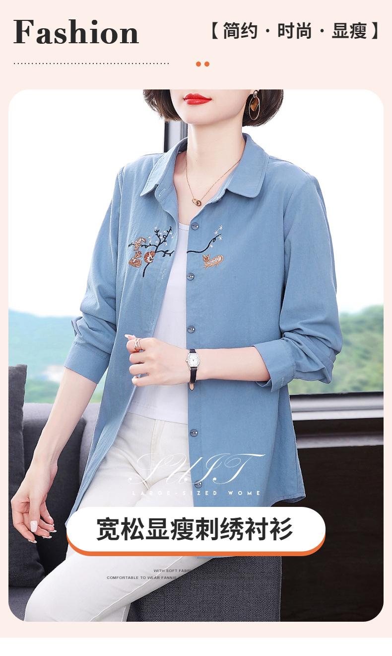 여성용 셔츠 2024 봄 가을 신상 엄마들을 위한 세련된 긴팔 상의 큰 사이즈 중간 길이 셔츠 재킷 트렌디