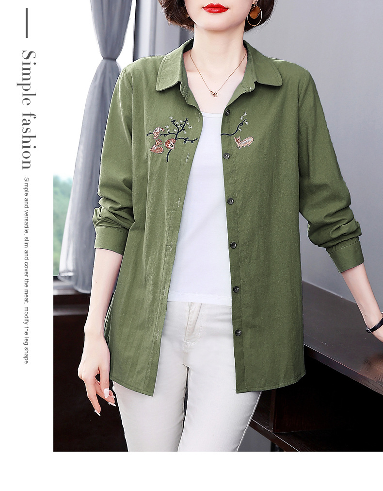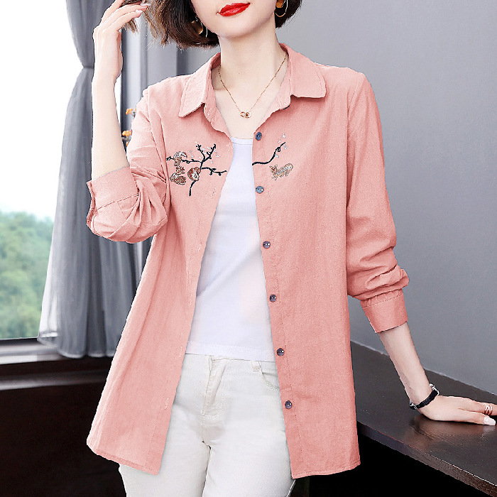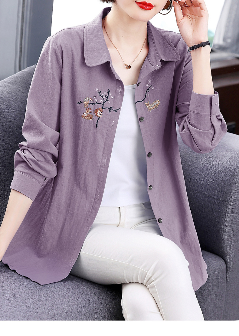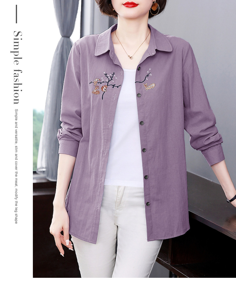 여성용 셔츠 2024 봄 가을 신상 엄마들을 위한 세련된 긴팔 상의 큰 사이즈 중간 길이 셔츠 재킷 트렌디
