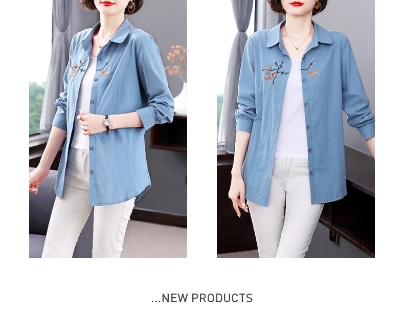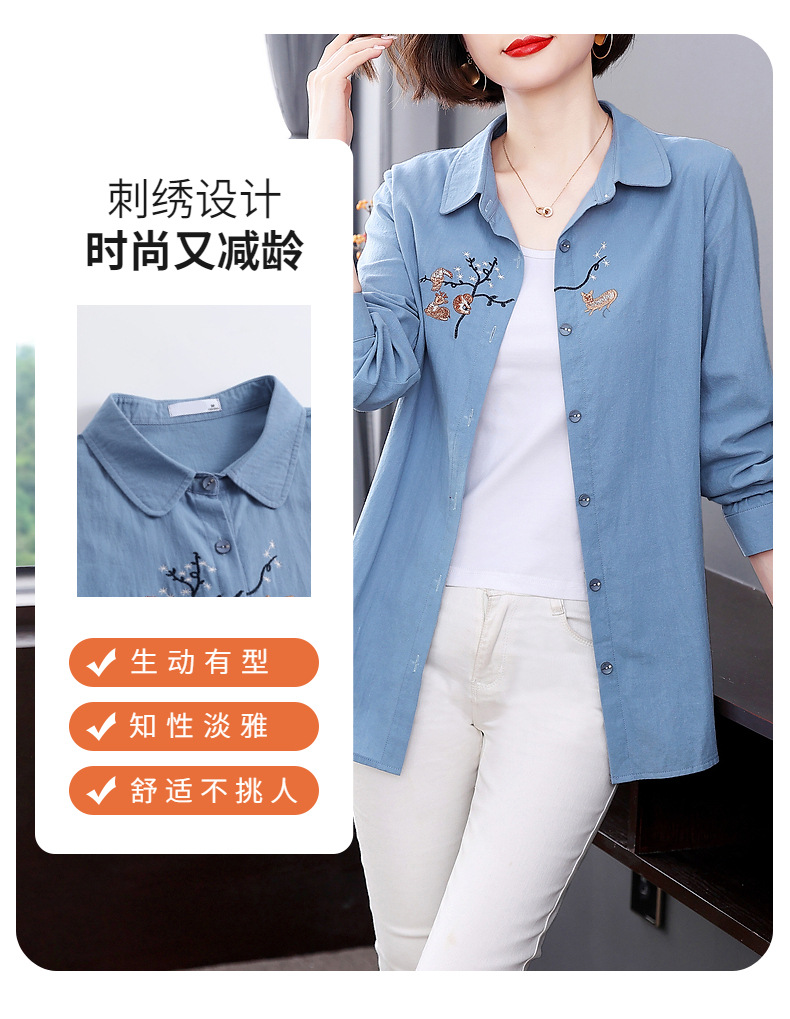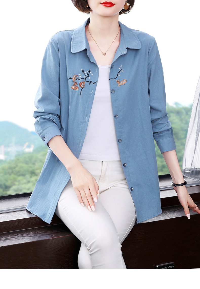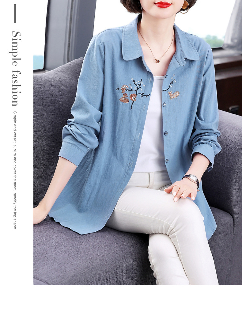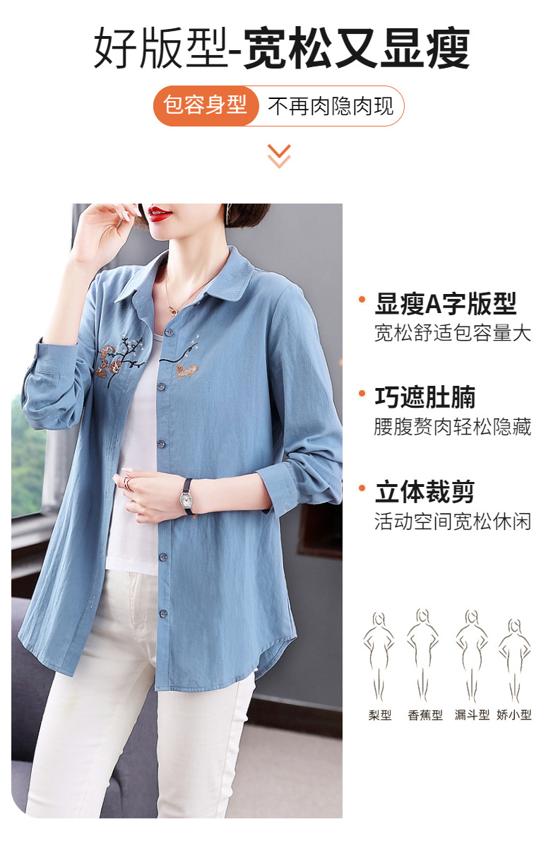 여성용 셔츠 2024 봄 가을 신상 엄마들을 위한 세련된 긴팔 상의 큰 사이즈 중간 길이 셔츠 재킷 트렌디스토어 가기