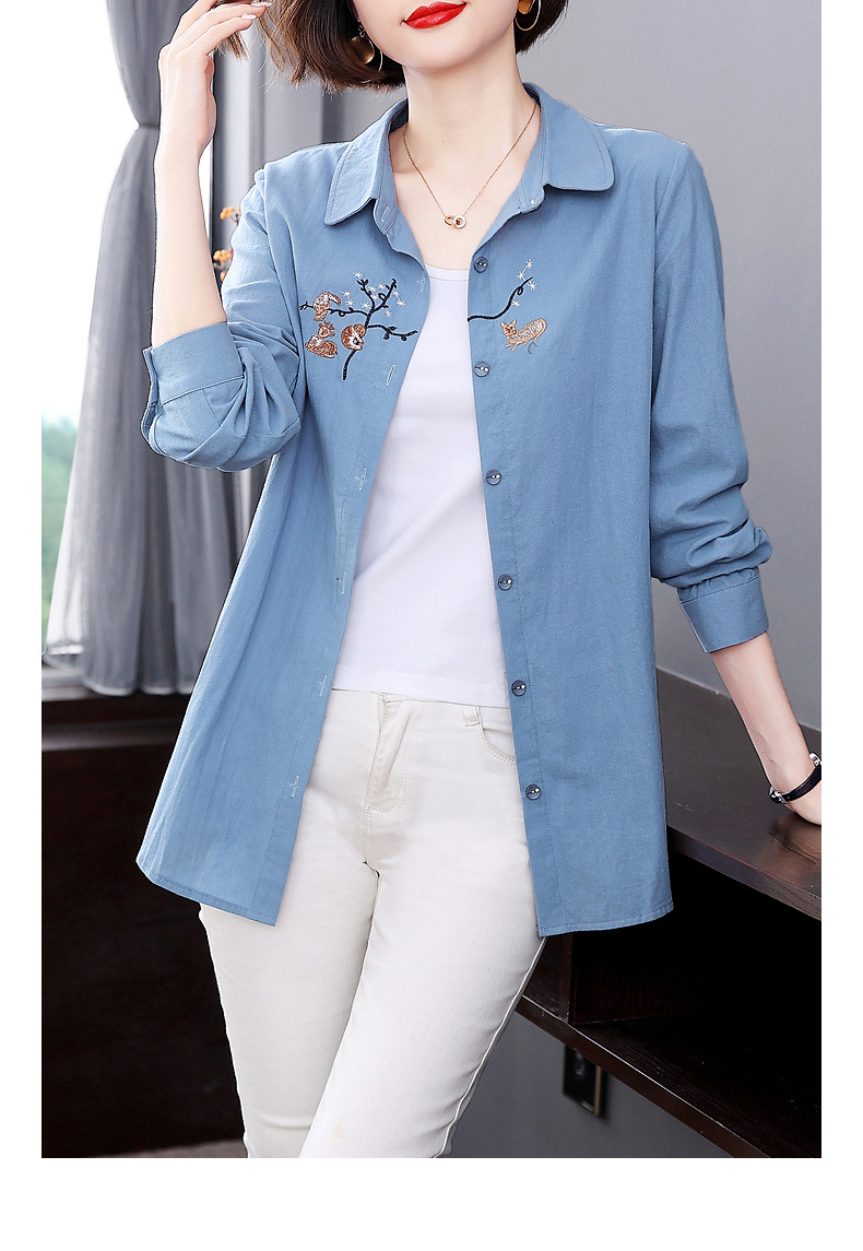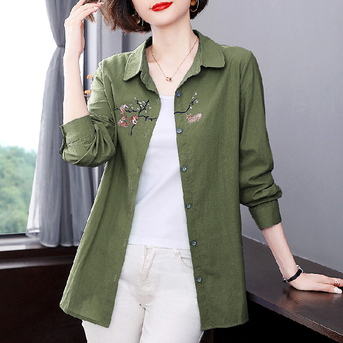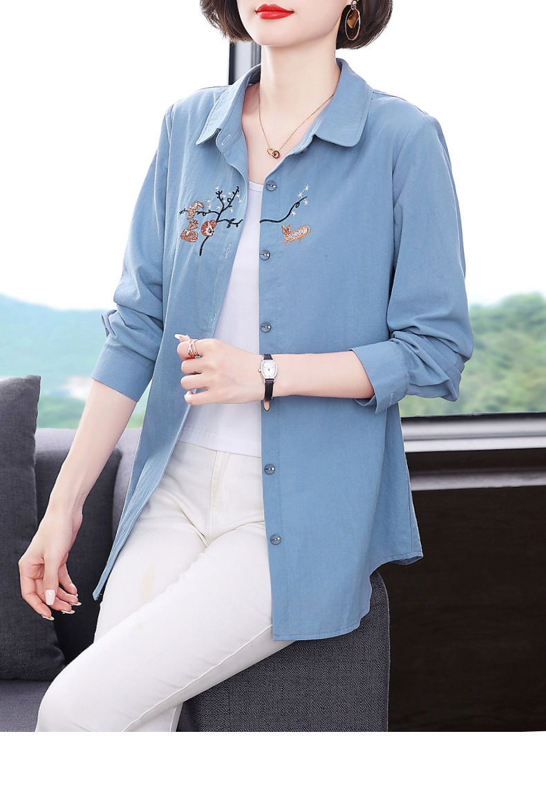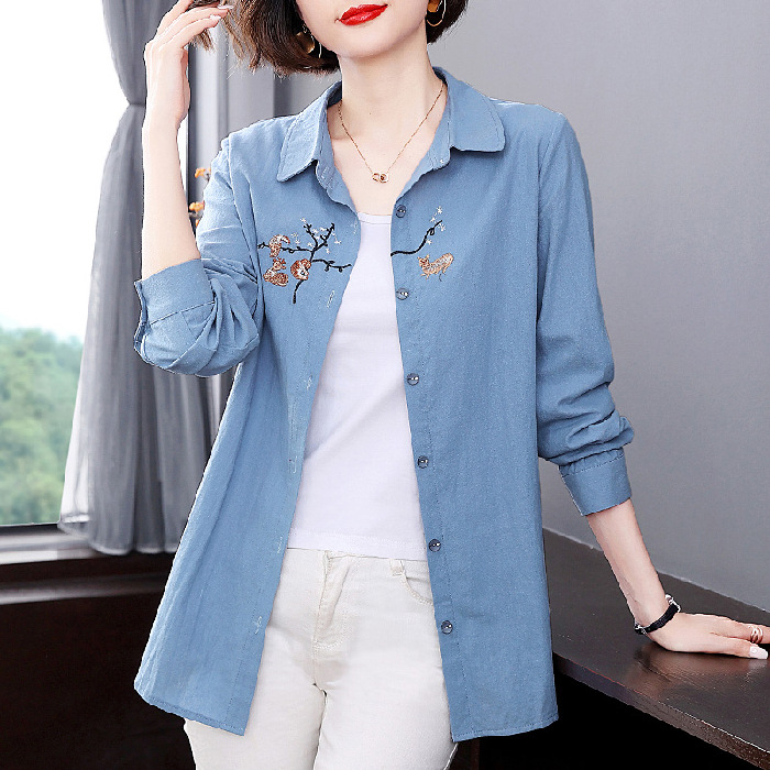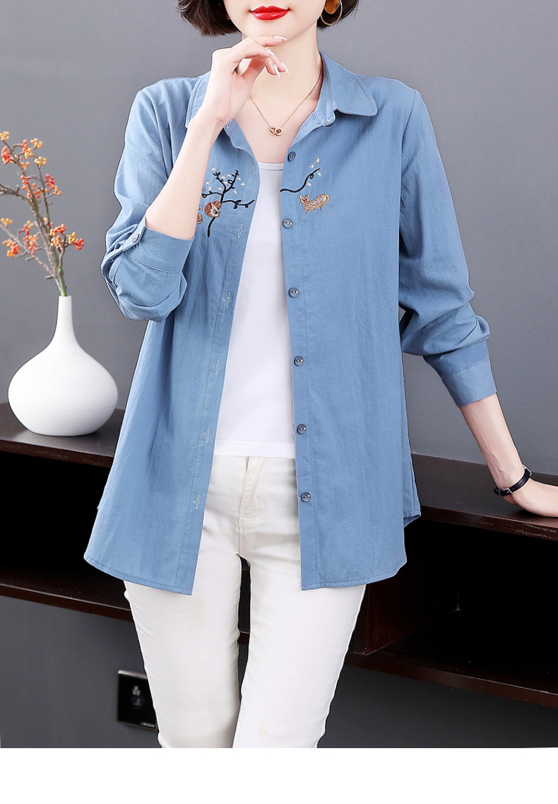 여성용 셔츠 2024 봄 가을 신상 엄마들을 위한 세련된 긴팔 상의 큰 사이즈 중간 길이 셔츠 재킷 트렌디스토어 가기