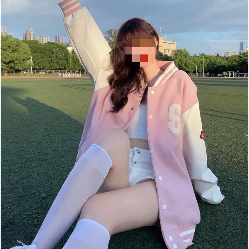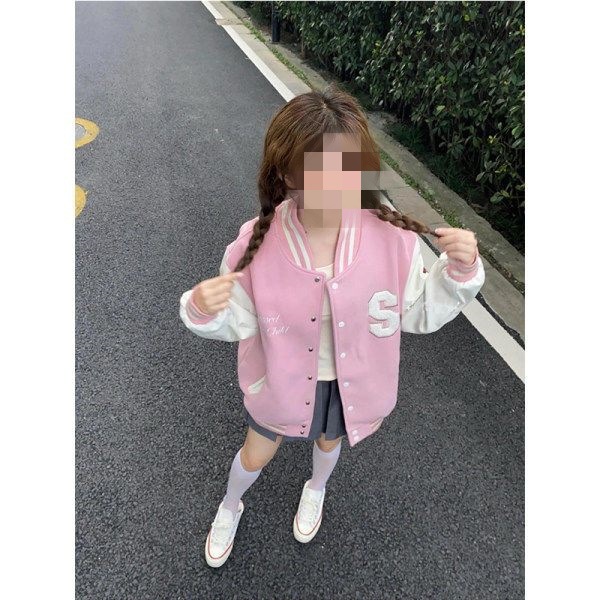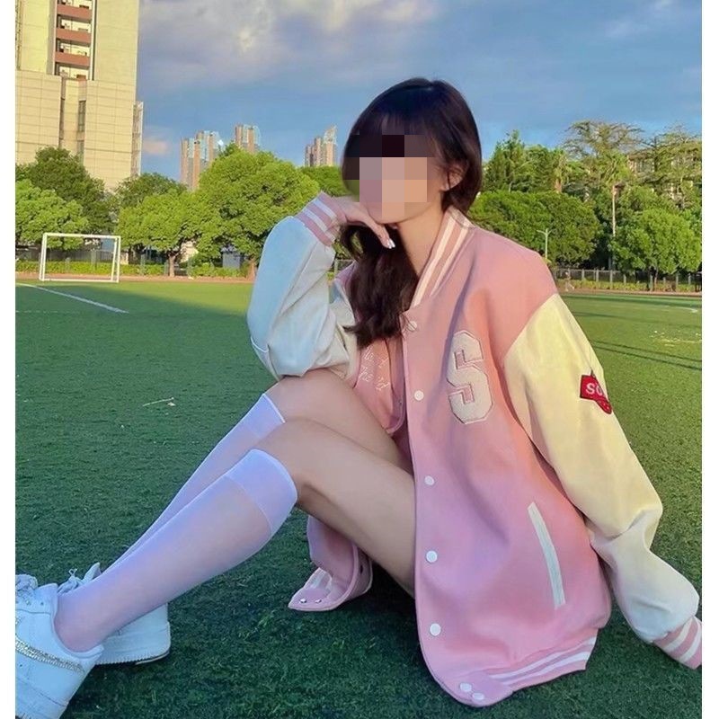 빈티지 아카데미 스타일 기모 핑크 야구 세트 여자의 봄과 가을 새로운 모든 경기 두꺼운 재킷 카디건 재킷 코트 여자스토어 가기