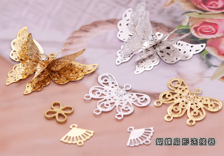 프로모션 DIY 골동품 궁전 꽃 머리 액세서리 합금 나비 팬 펜던트 커넥터 머리핀 수제 재료스토어 가기