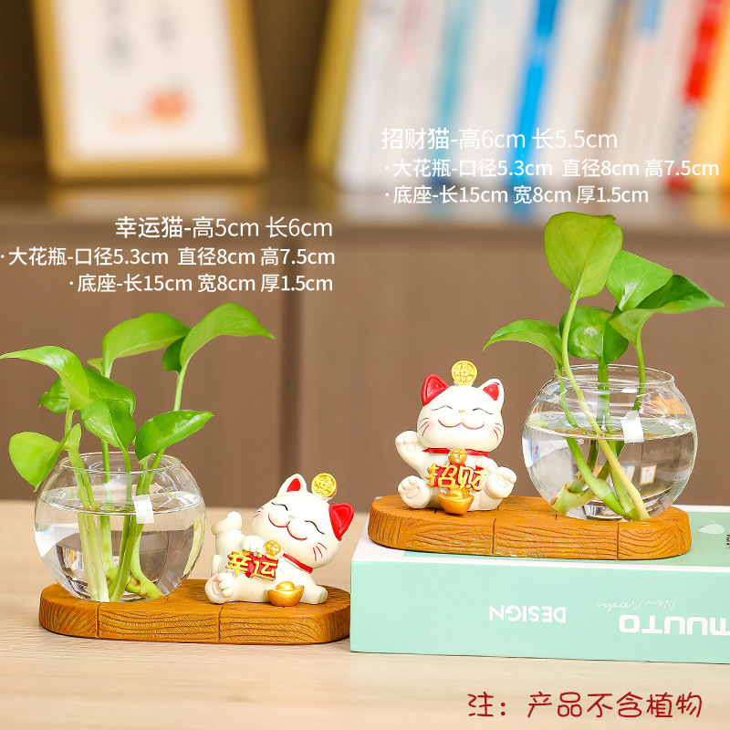• 행운의 고양이 + 나무 곡물 바닥 수경 재배