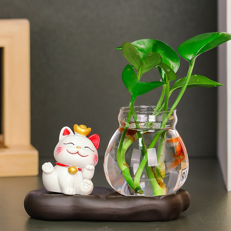창조적 인 거실 장식품 행운의 고양이 유리 꽃 가정용 액세서리 사무실 책상 녹색 장미 꽃병 세라믹 수경기구스토어 가기