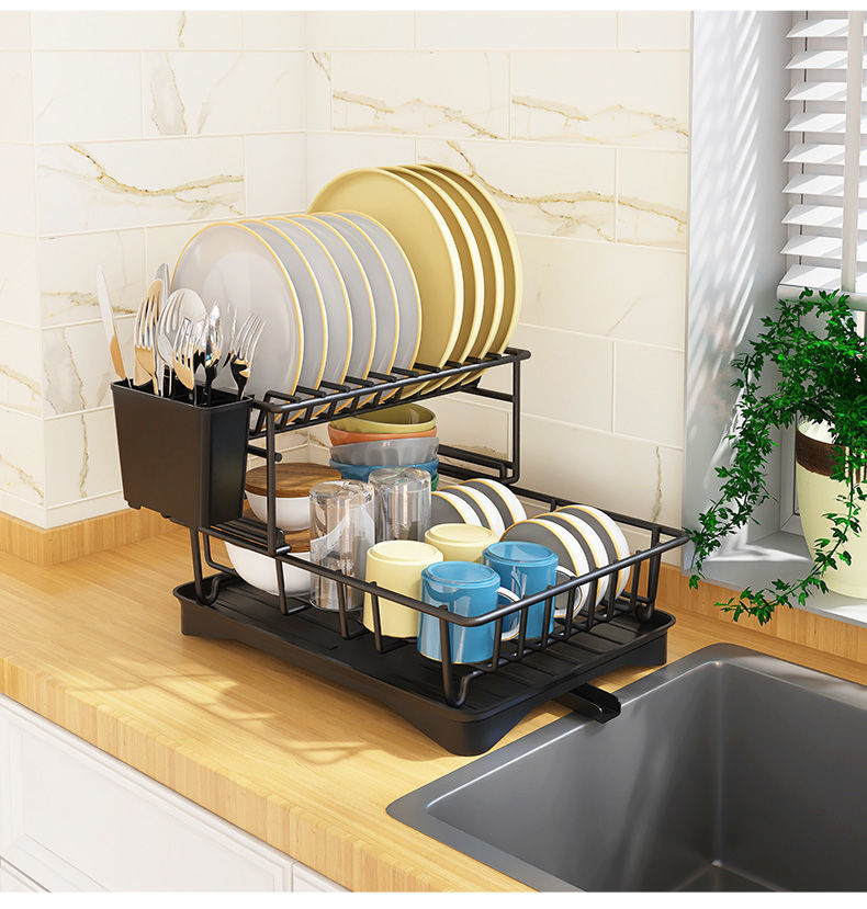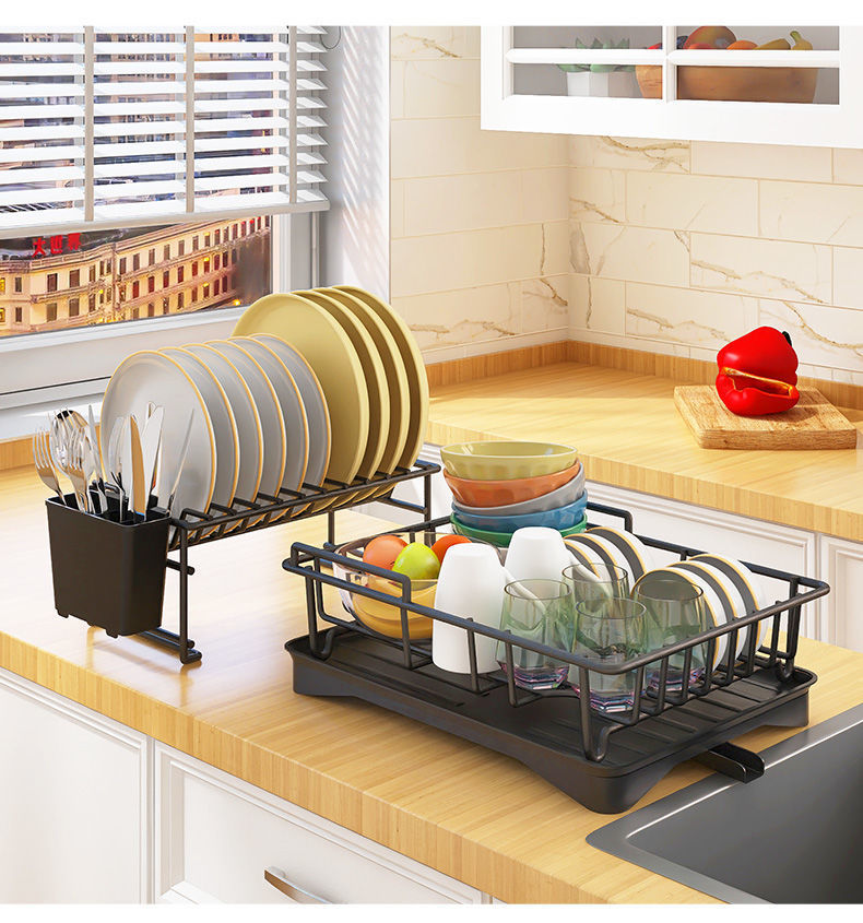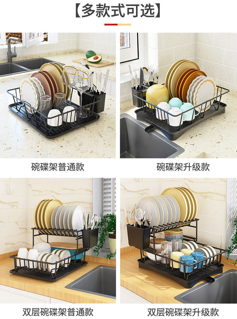 배수 접시 랙 스테인레스 스틸 접시 배수 랙 찬장 싱크대 보관 랙 물 필터 건조 주방 국경 간스토어 가기