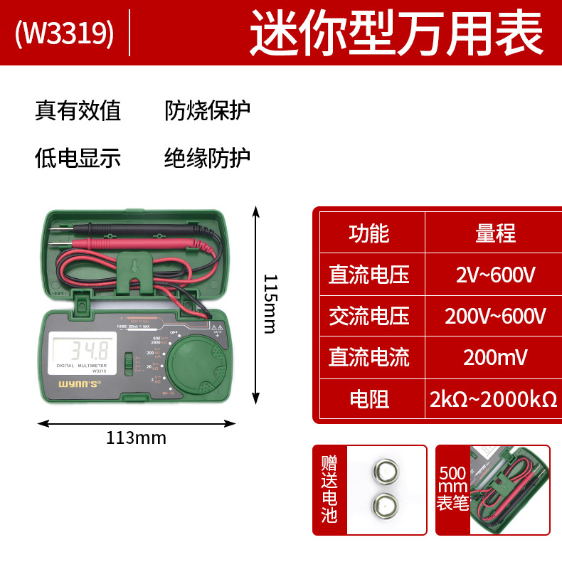 전원 사자 디스플레이 멀티 미터 다기능 높은 정밀 디지털 클램프 유니버설 미터 전기 Ammeter W3319스토어 가기